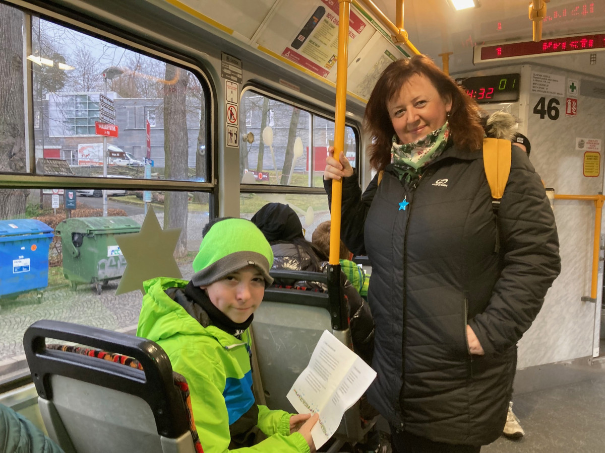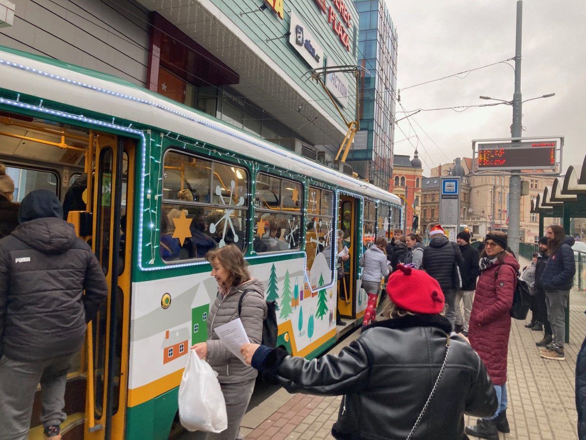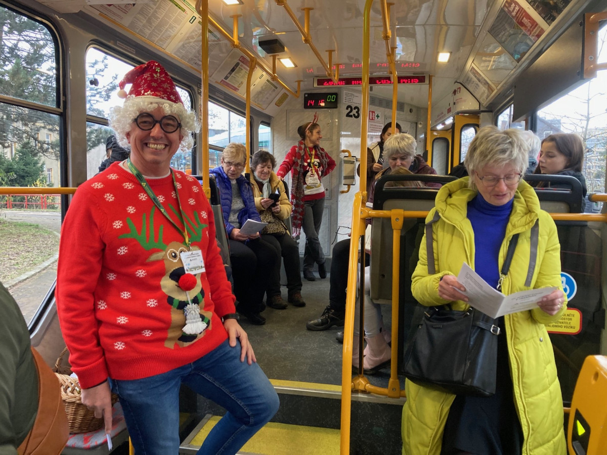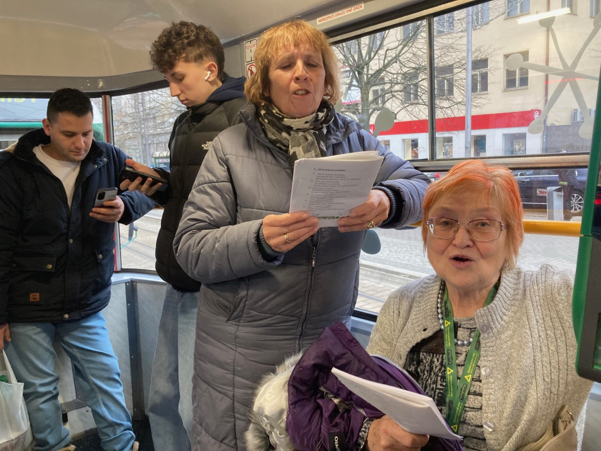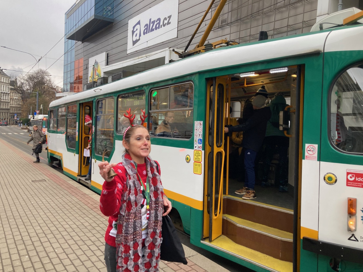 Z vánočně zdobené tramvaje se v Liberci nesl zpěv koled. Cestující svátečně naladila