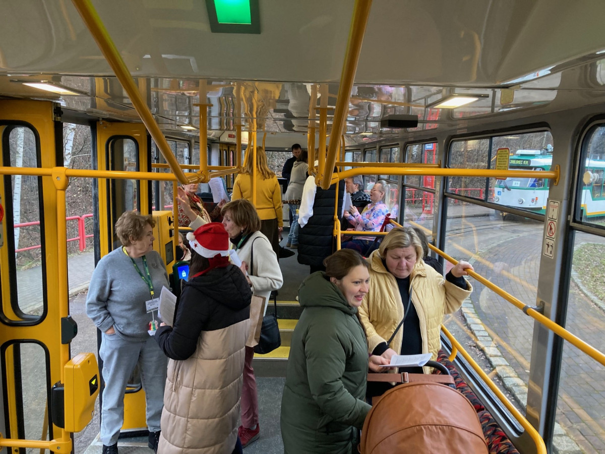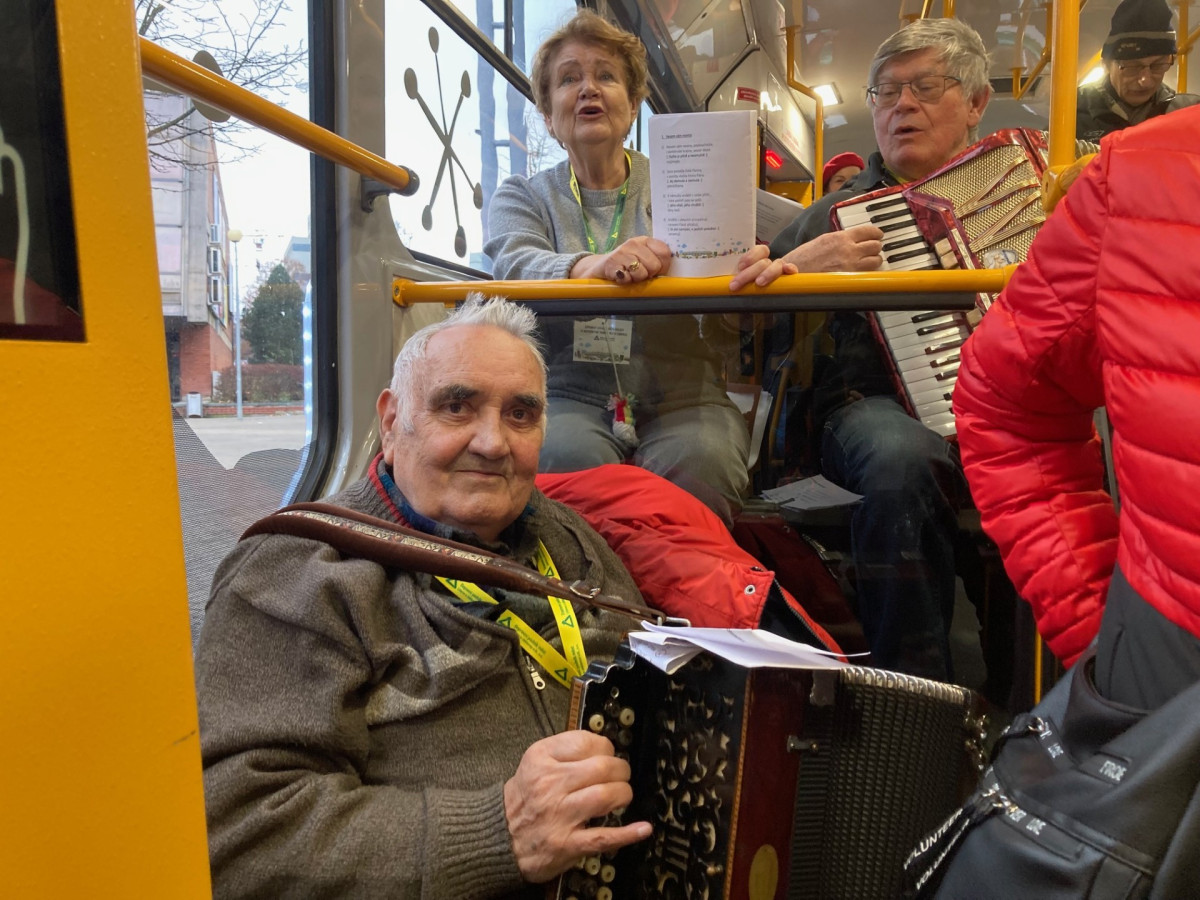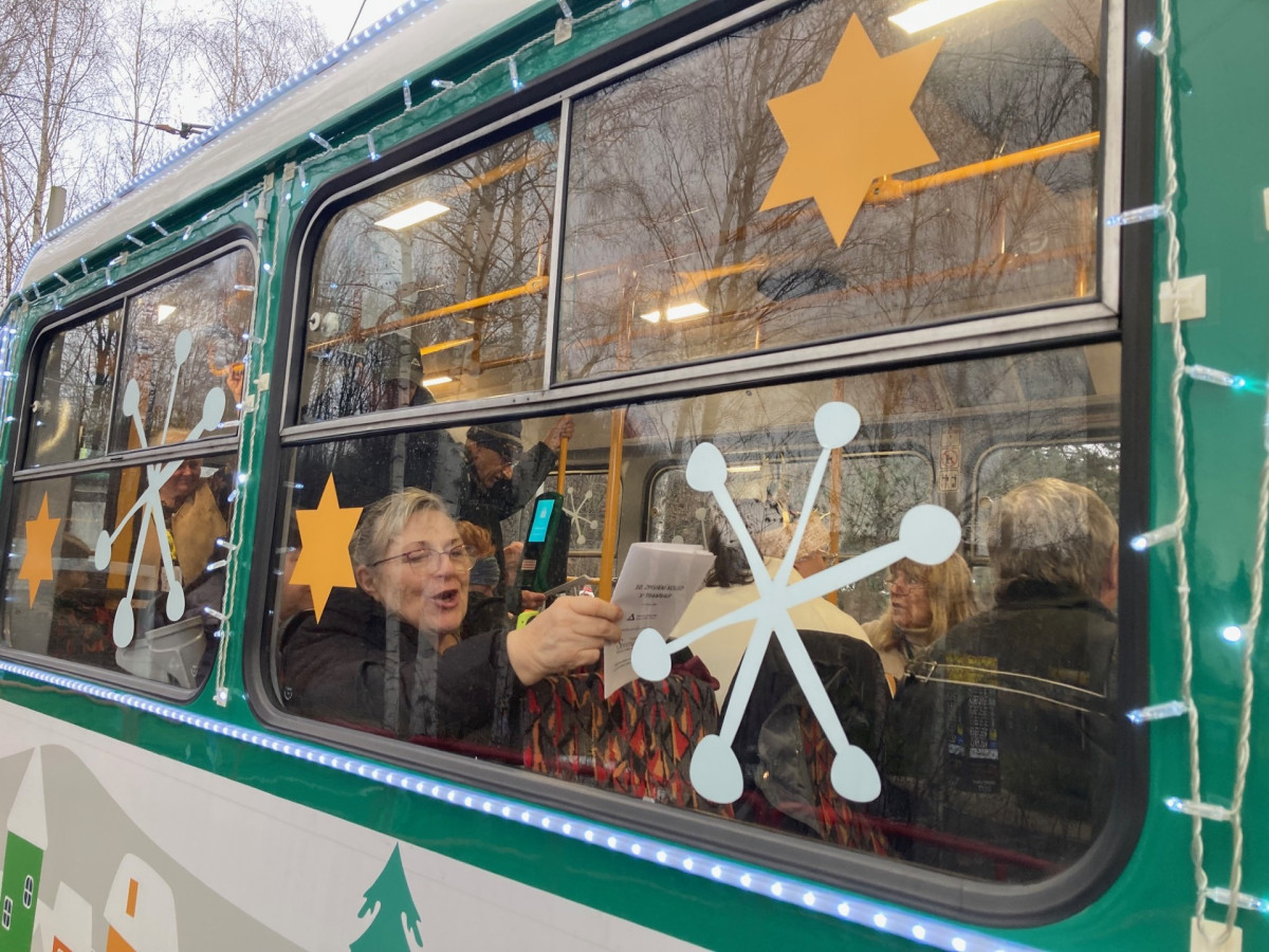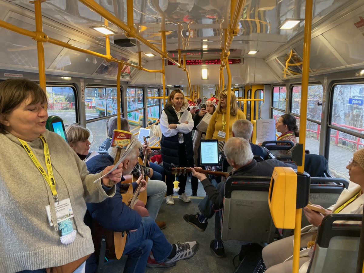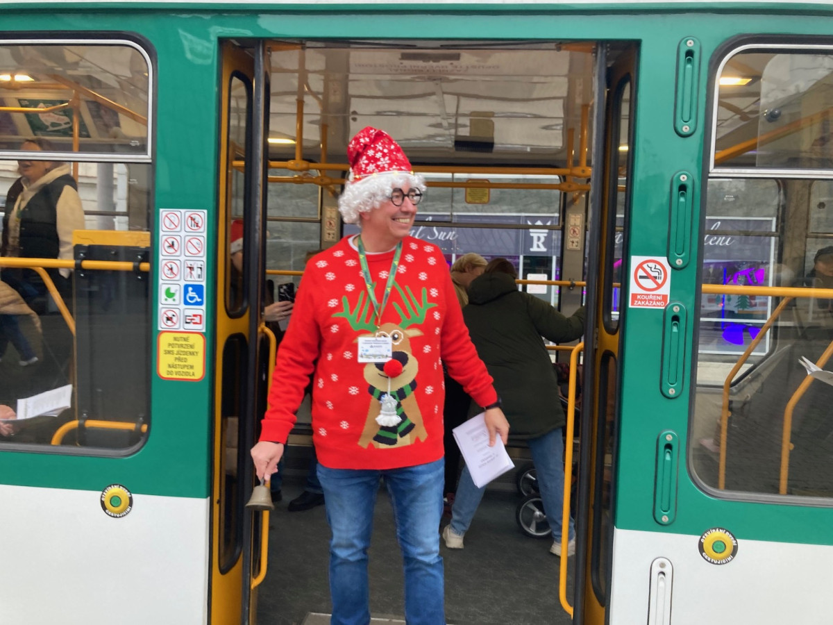 Z vánočně zdobené tramvaje se v Liberci nesl zpěv koled. Cestující svátečně naladila