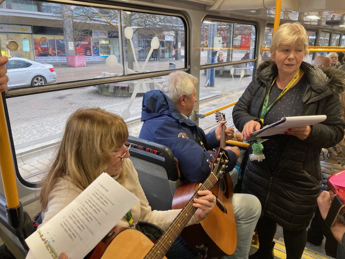 Z vánočně zdobené tramvaje se v Liberci nesl zpěv koled. Cestující svátečně naladila více...