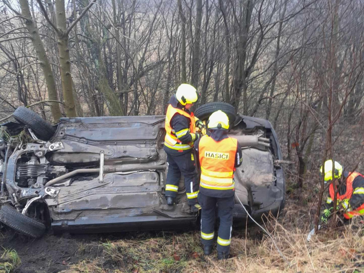 Po bouračce v příkopu a bez řidiče. Hasiče a policisty zaměstnal vůz ve Frýdštejně