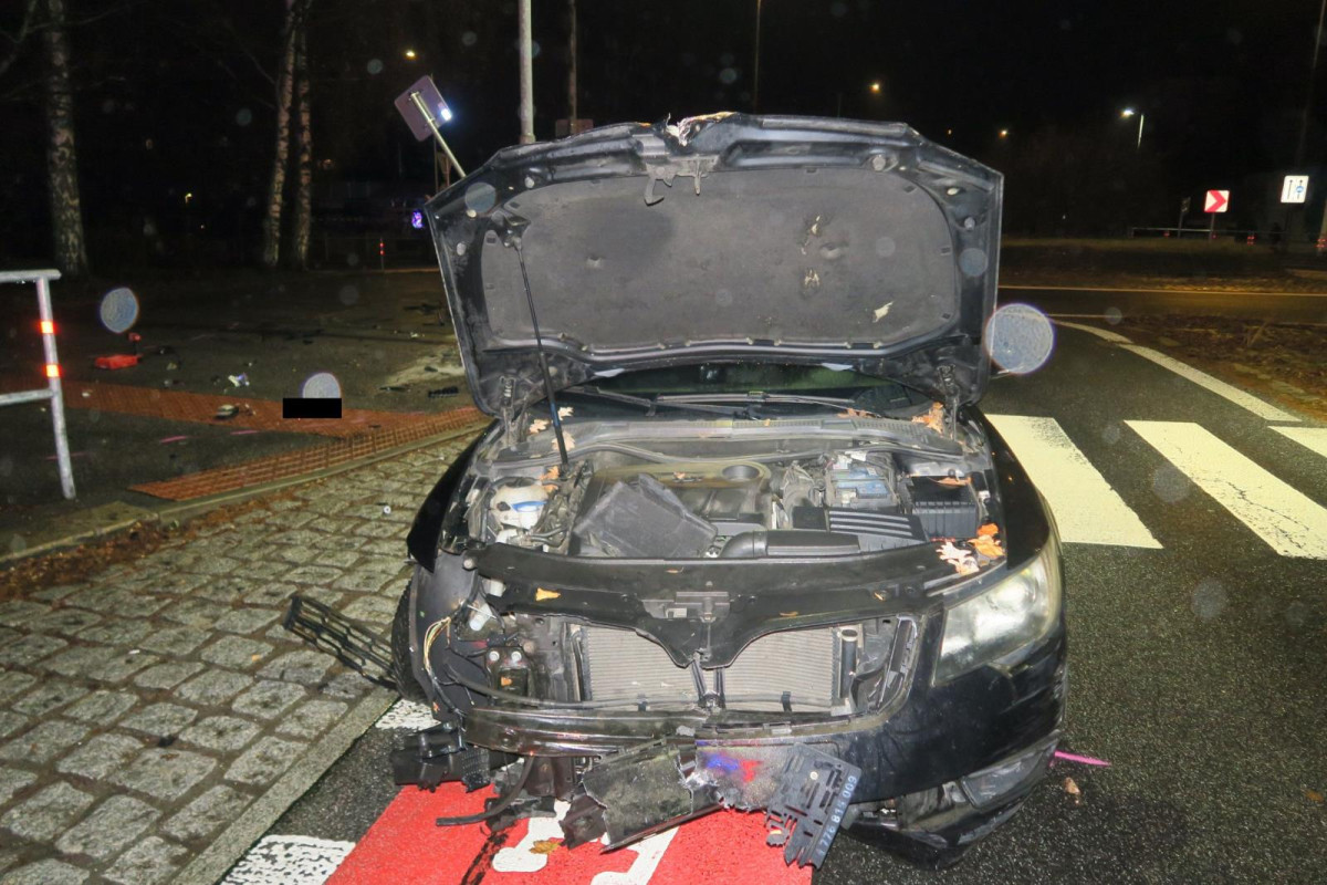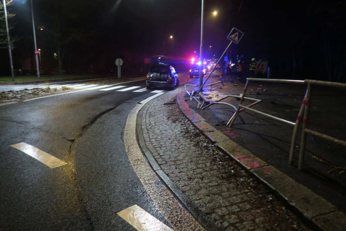 Řidička v Jablonci zdemolovala kruháč i auto. Nadýchala přes dvě promile