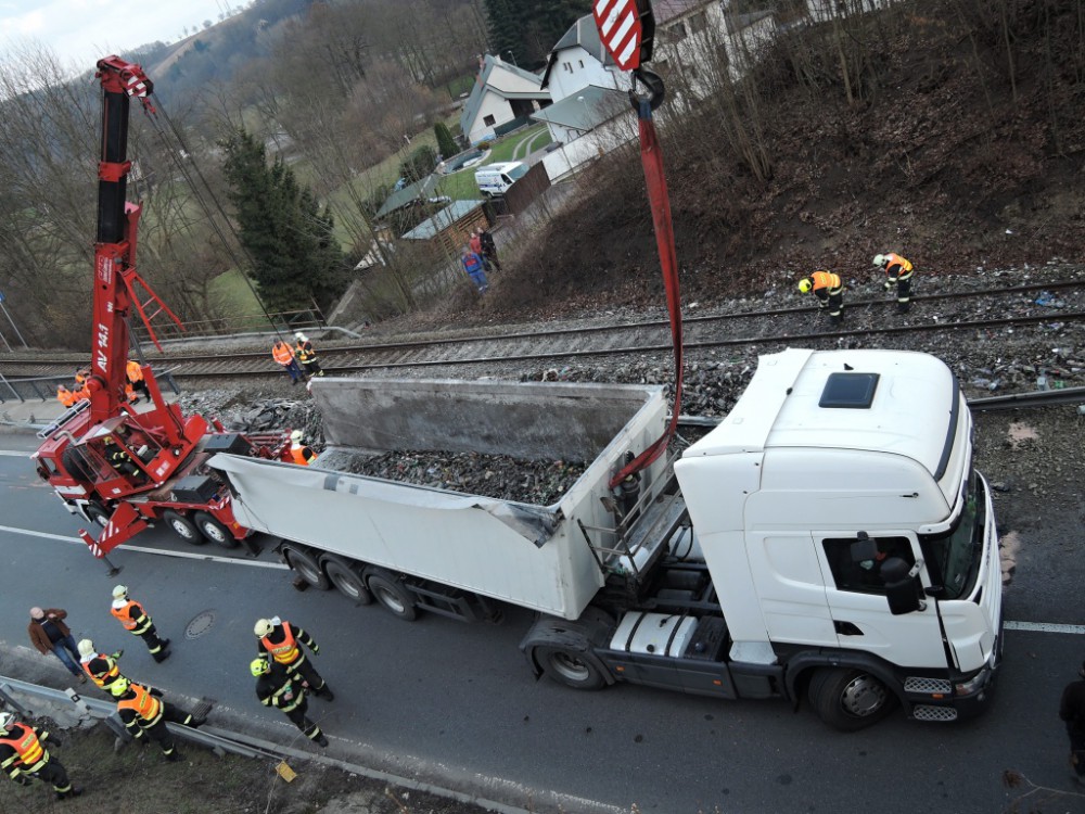 Dopravu v Dolánkách zablokovala nehoda kamionu. Foto: HZS LK