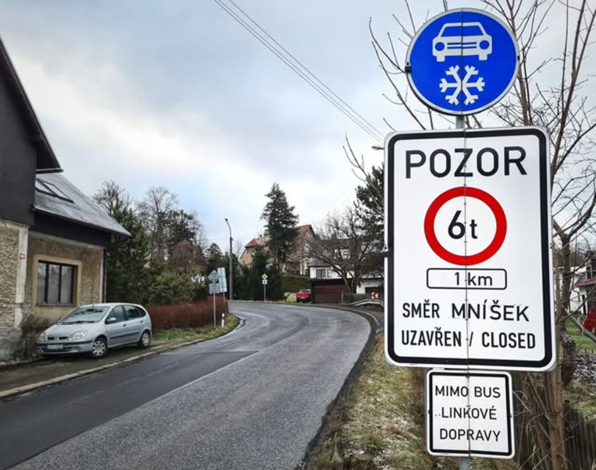 Silnice na Raspenavu přes Mníšek je kvůli počasí pro nákladní dopravu uzavřena