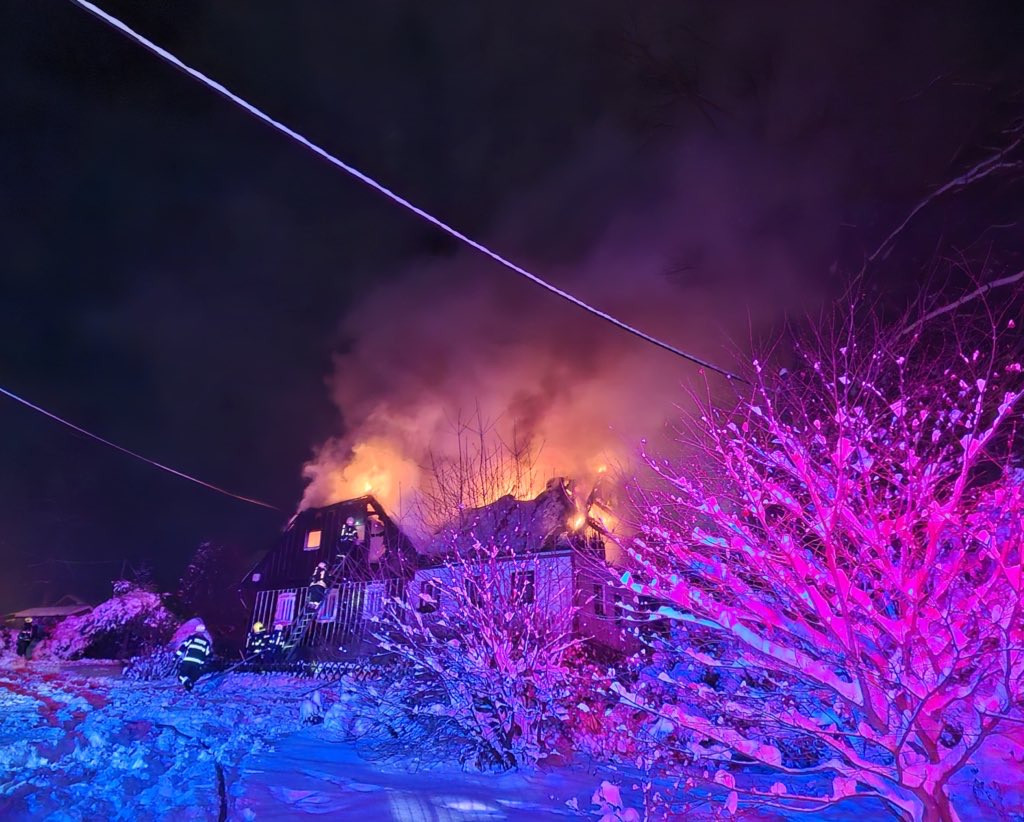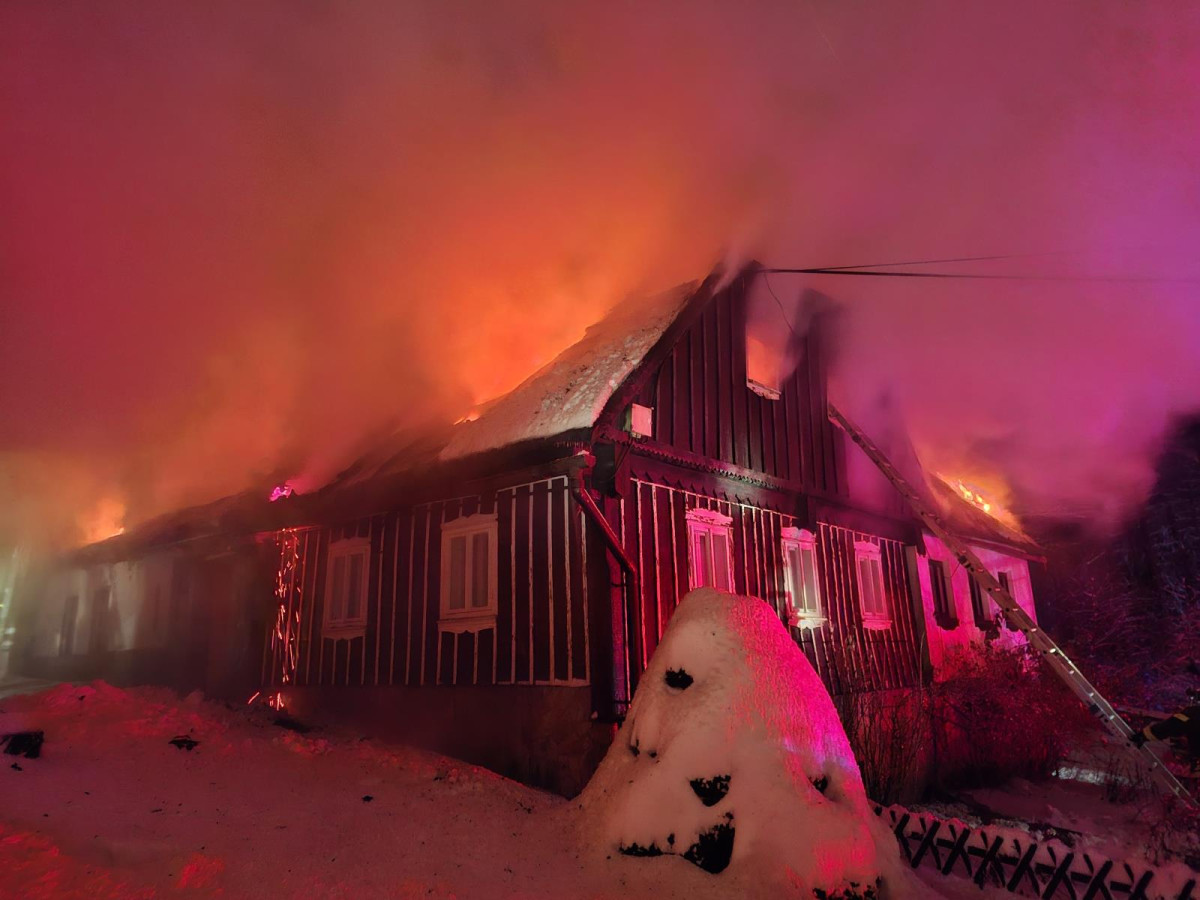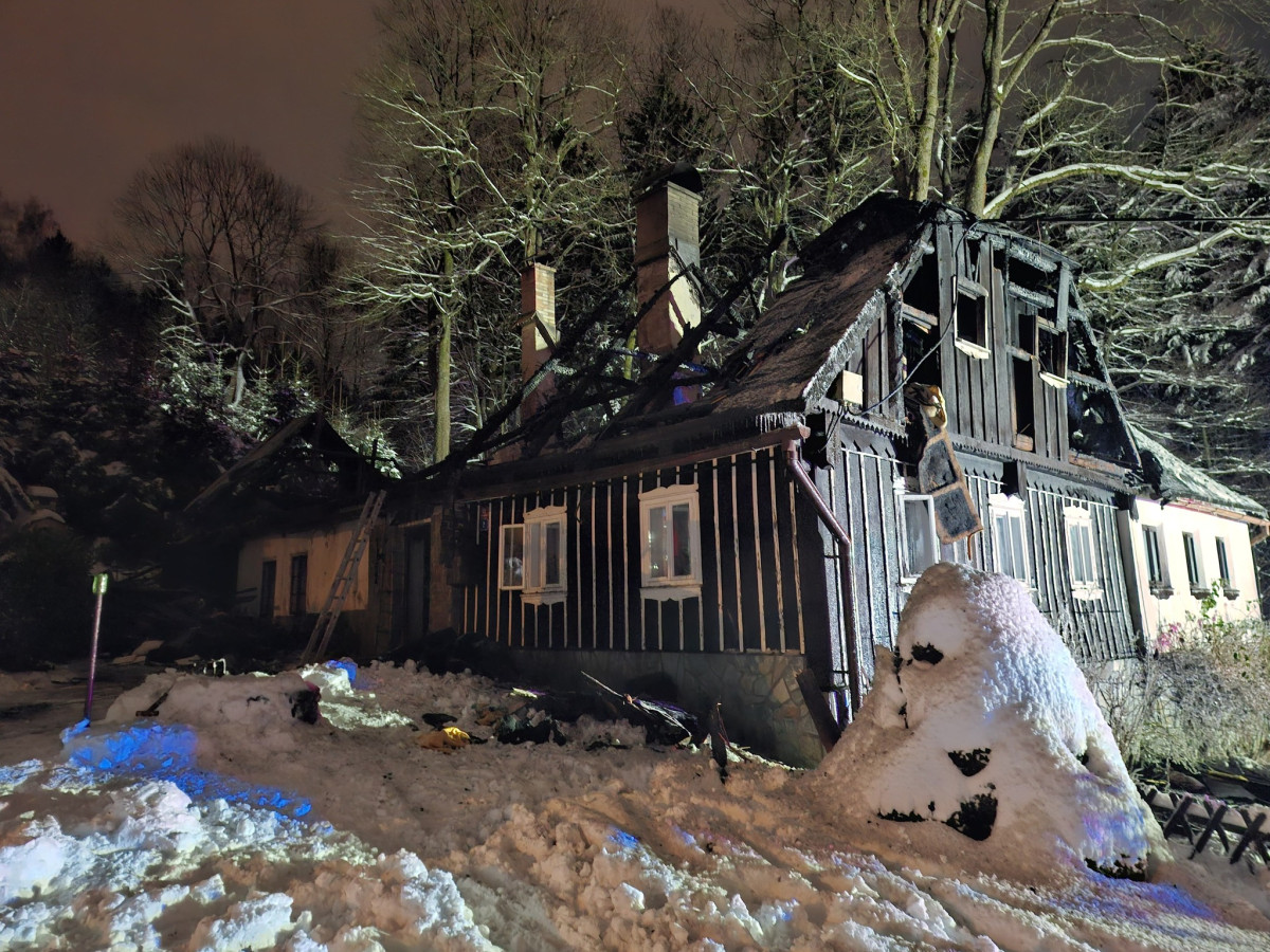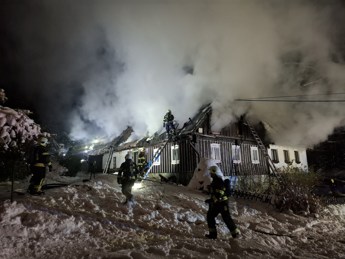 V Jabloneckých Pasekách v noci vyhořela roubenka. Náročný zásah komplikoval sníh
