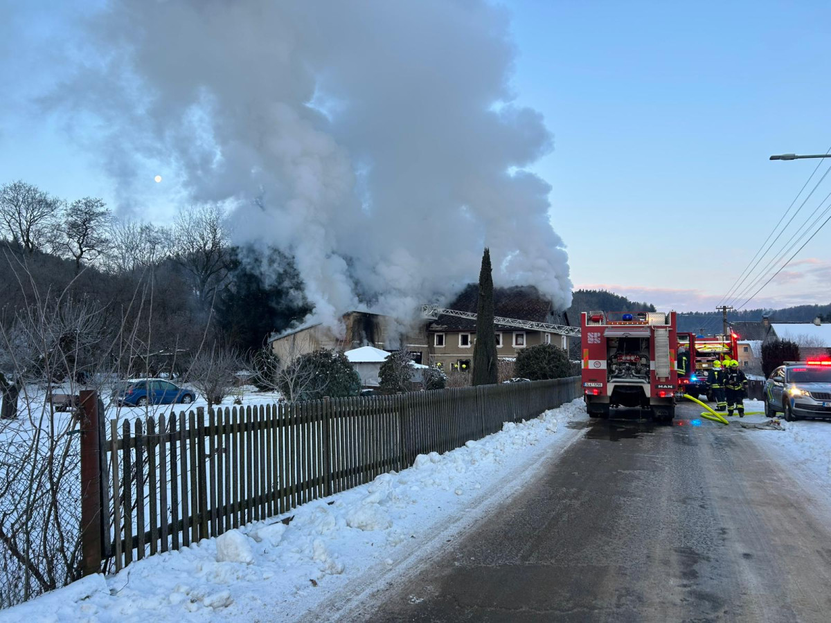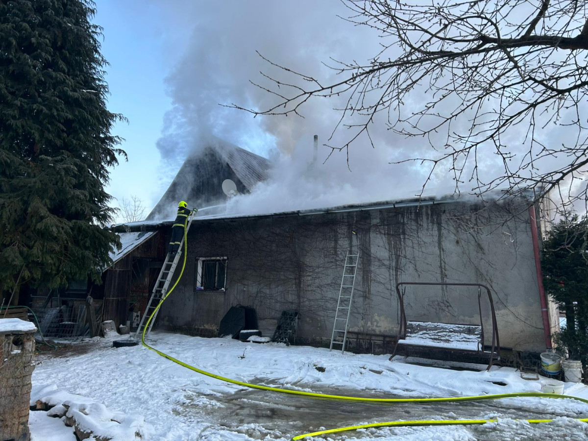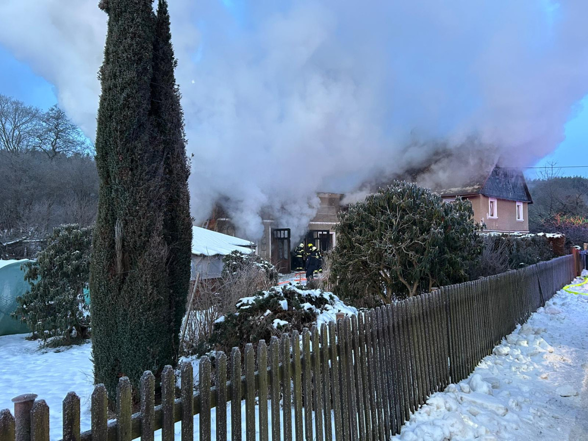 Požár ve Velenicích. Oheň zasáhl dílnu u rodinného domu