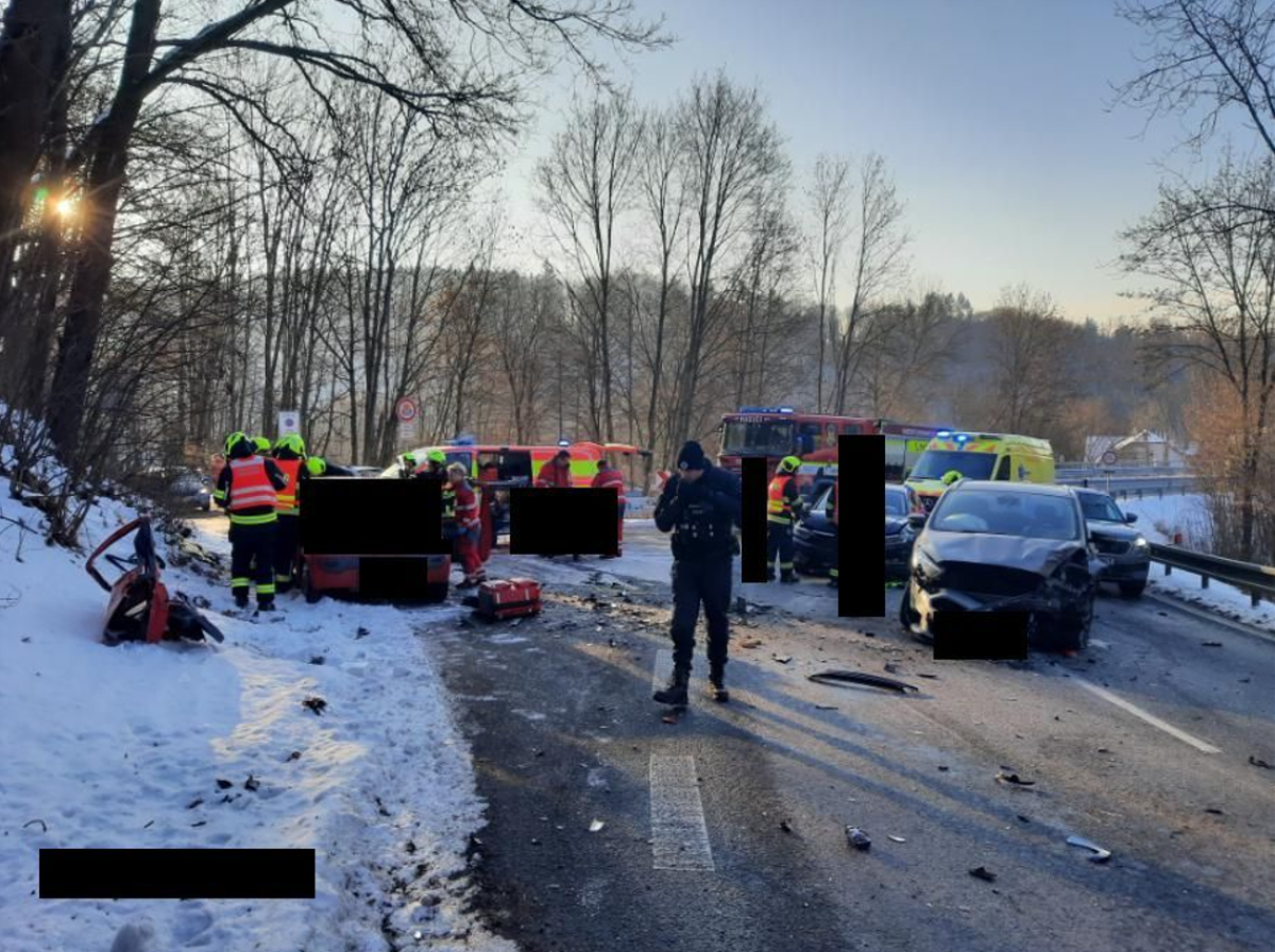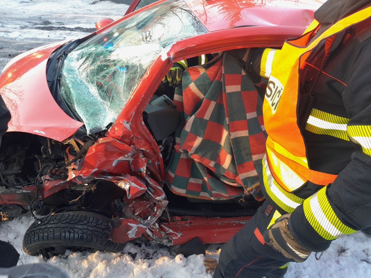 Nehoda tří aut mezi Turnovem a Malou Skálou zavřela silnici, řidičku hasiči vystříhávali