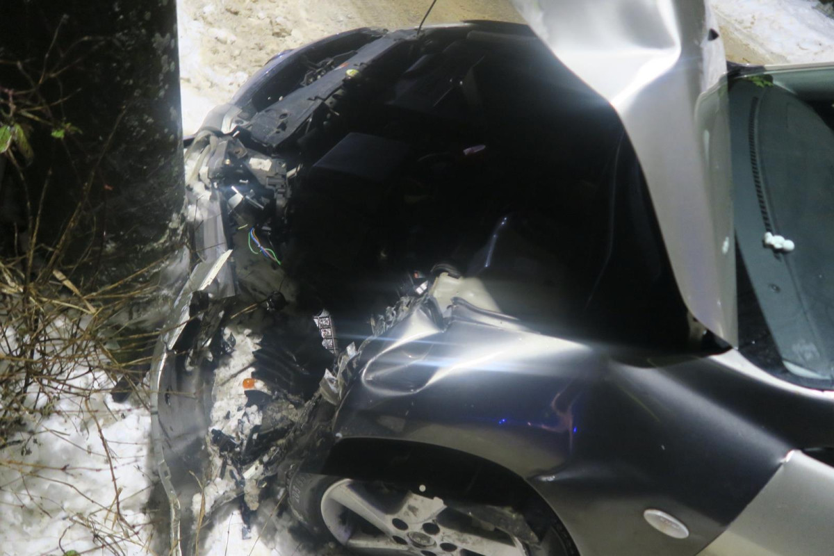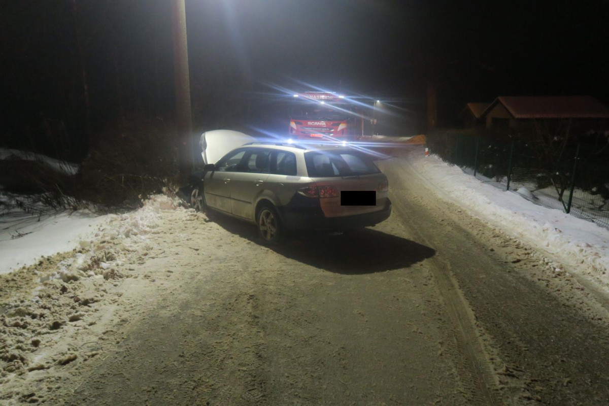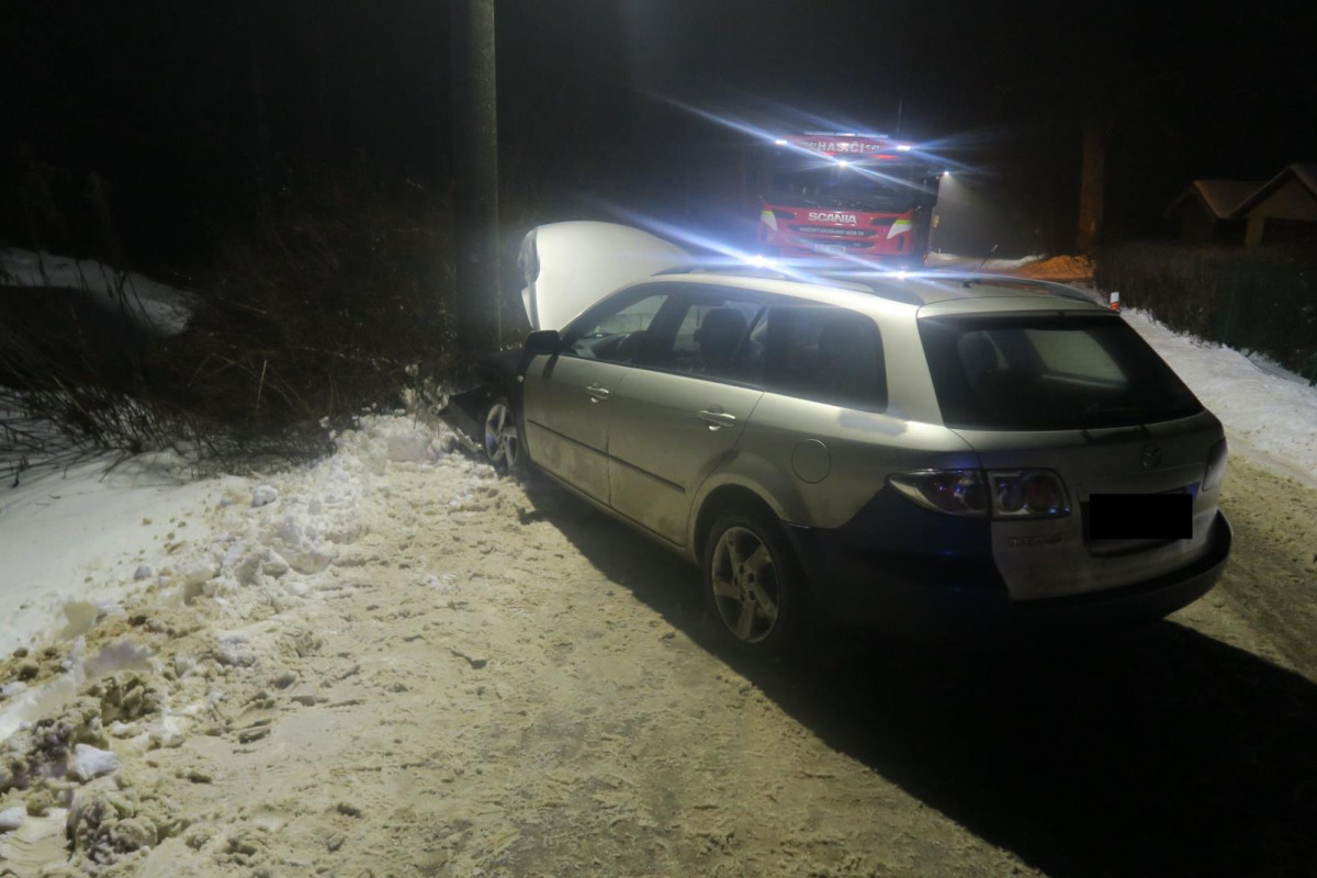 Řidička na zasněžené vozovce dostala smyk a narazila do sloupu