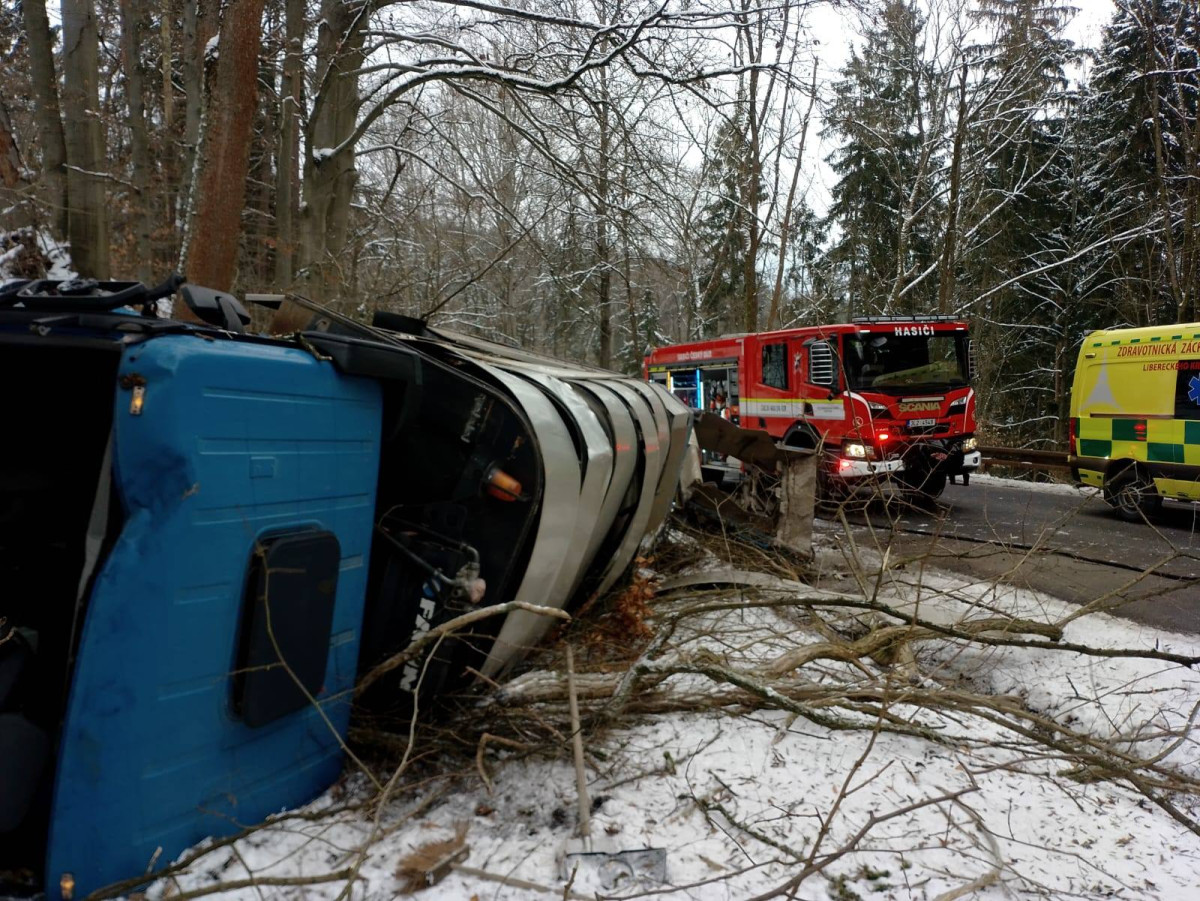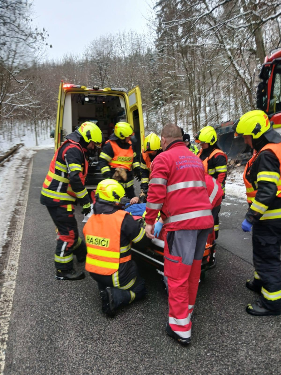 Náklaďák se u Českého Dubu zřítil ze stráně, několik zraněných