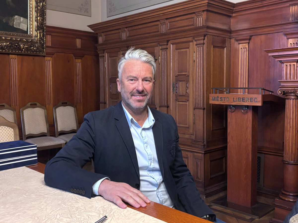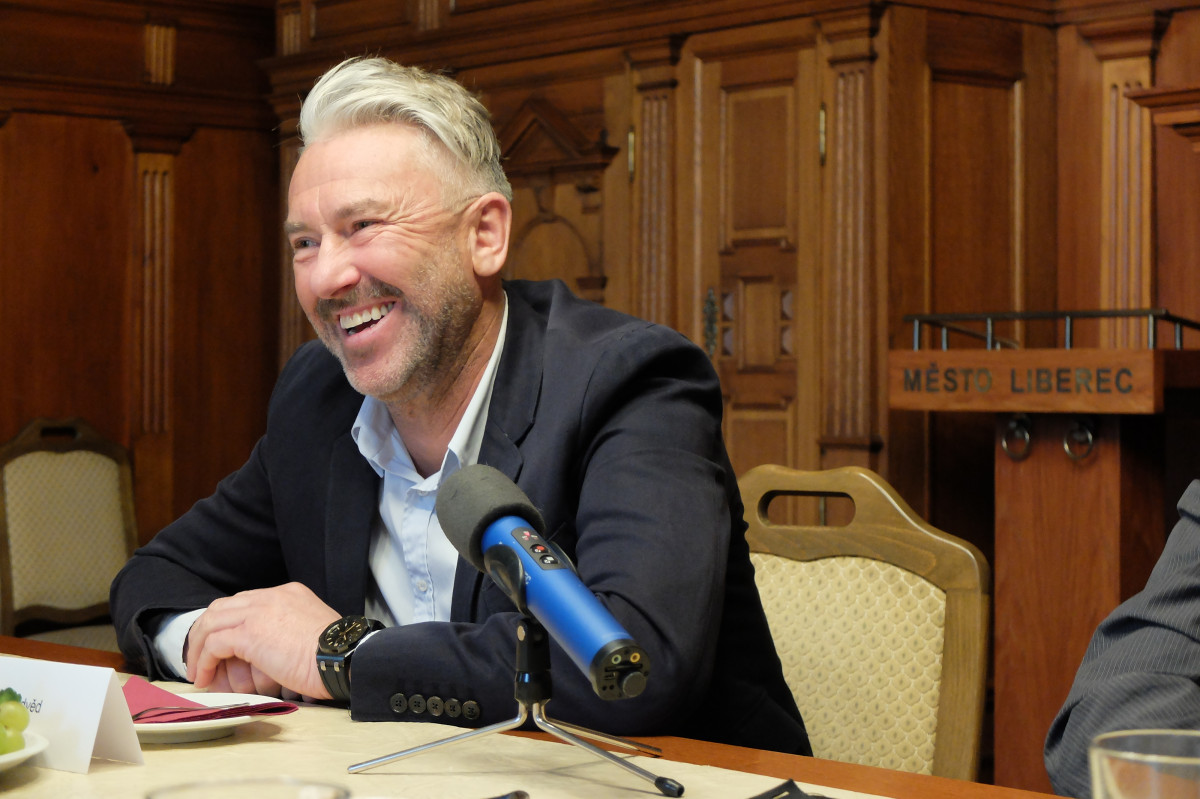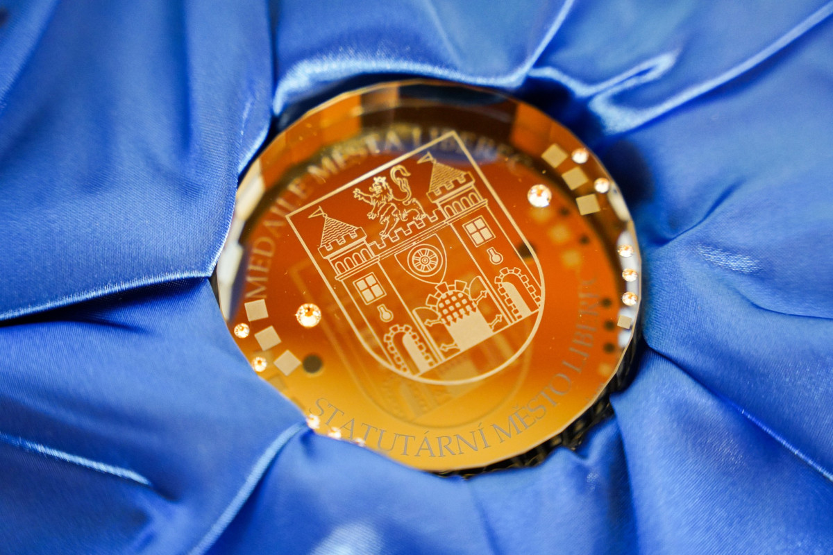 Petr Nedvěd převzal Medaile města Liberec za přínos v oblasti sportu pro sebe a svého otce Jaroslava Nedvěda v zasedací místnosti liberecké radnice.