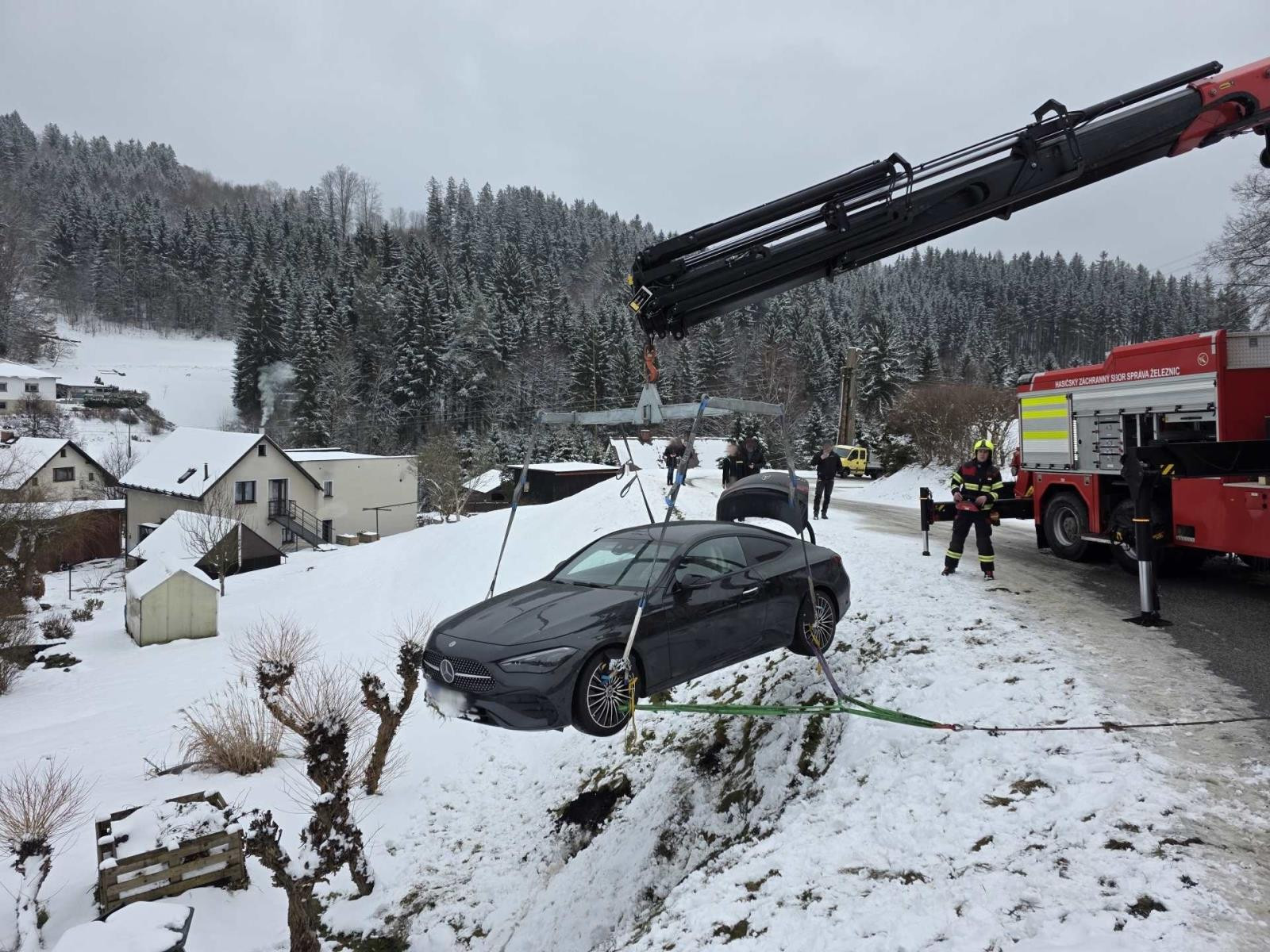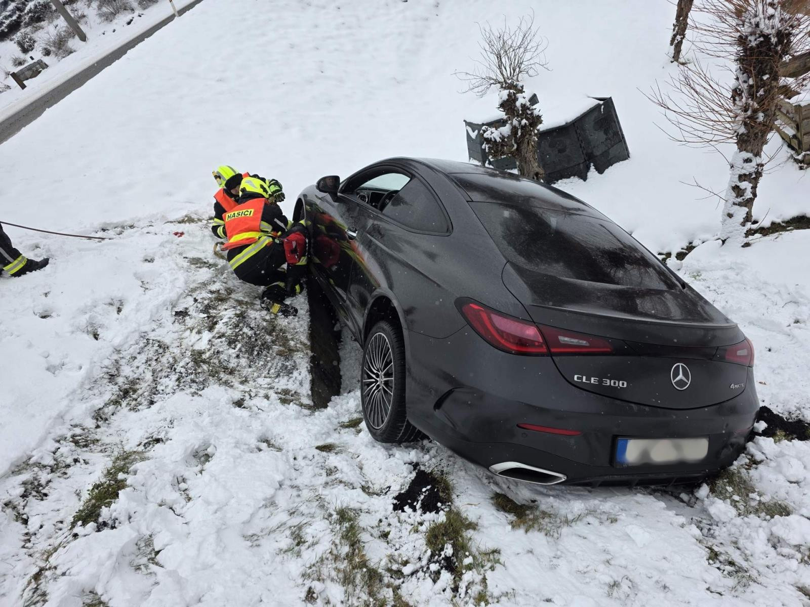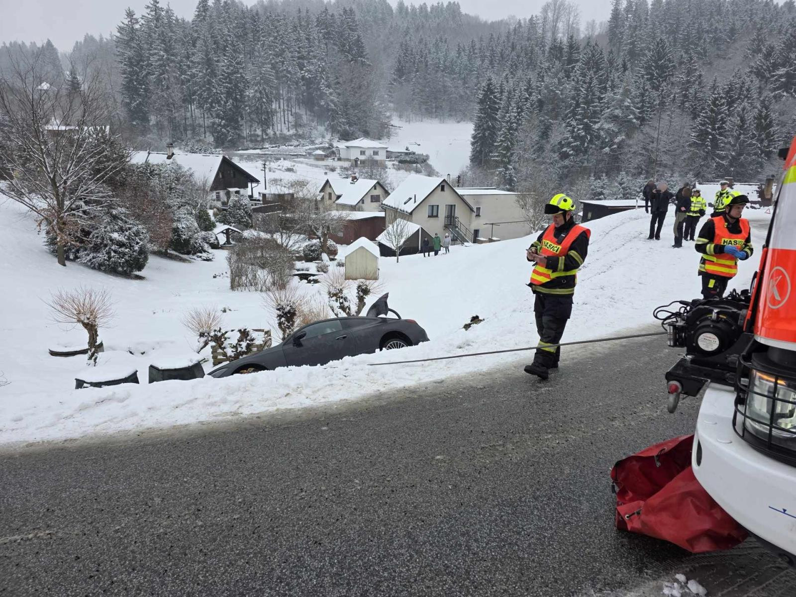 Mercedes na Jablonecku vylétl ze silnice do příkopu, pomoc pasažérům zavolal systém eCall
