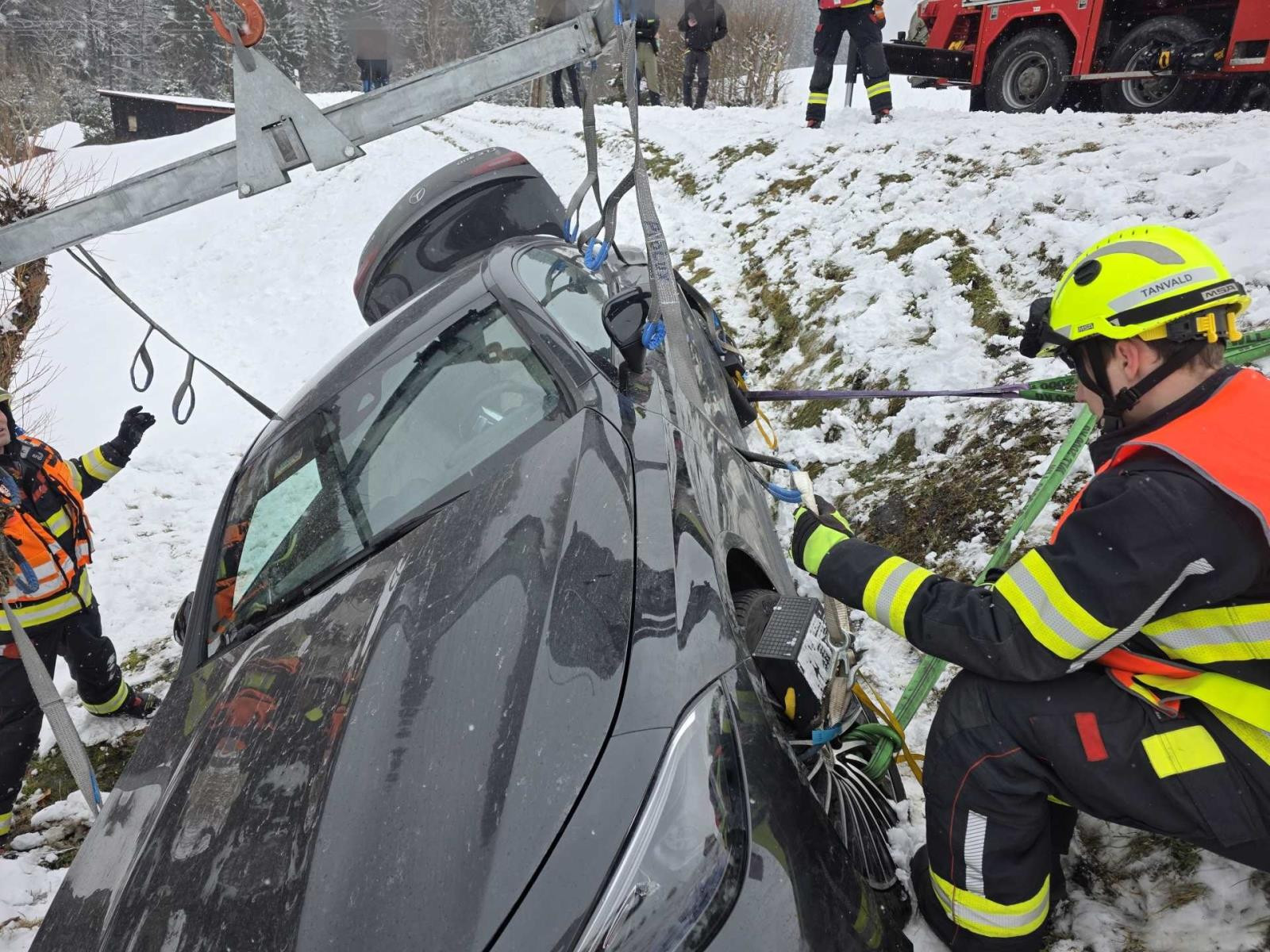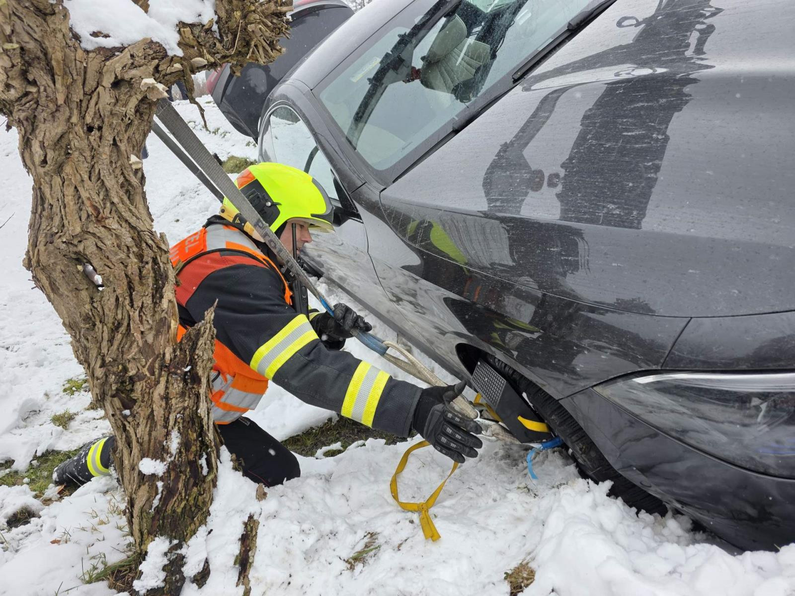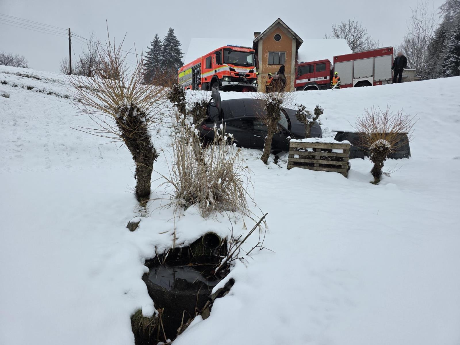 Mercedes na Jablonecku vylétl ze silnice do příkopu, pomoc pasažérům zavolal systém eCall