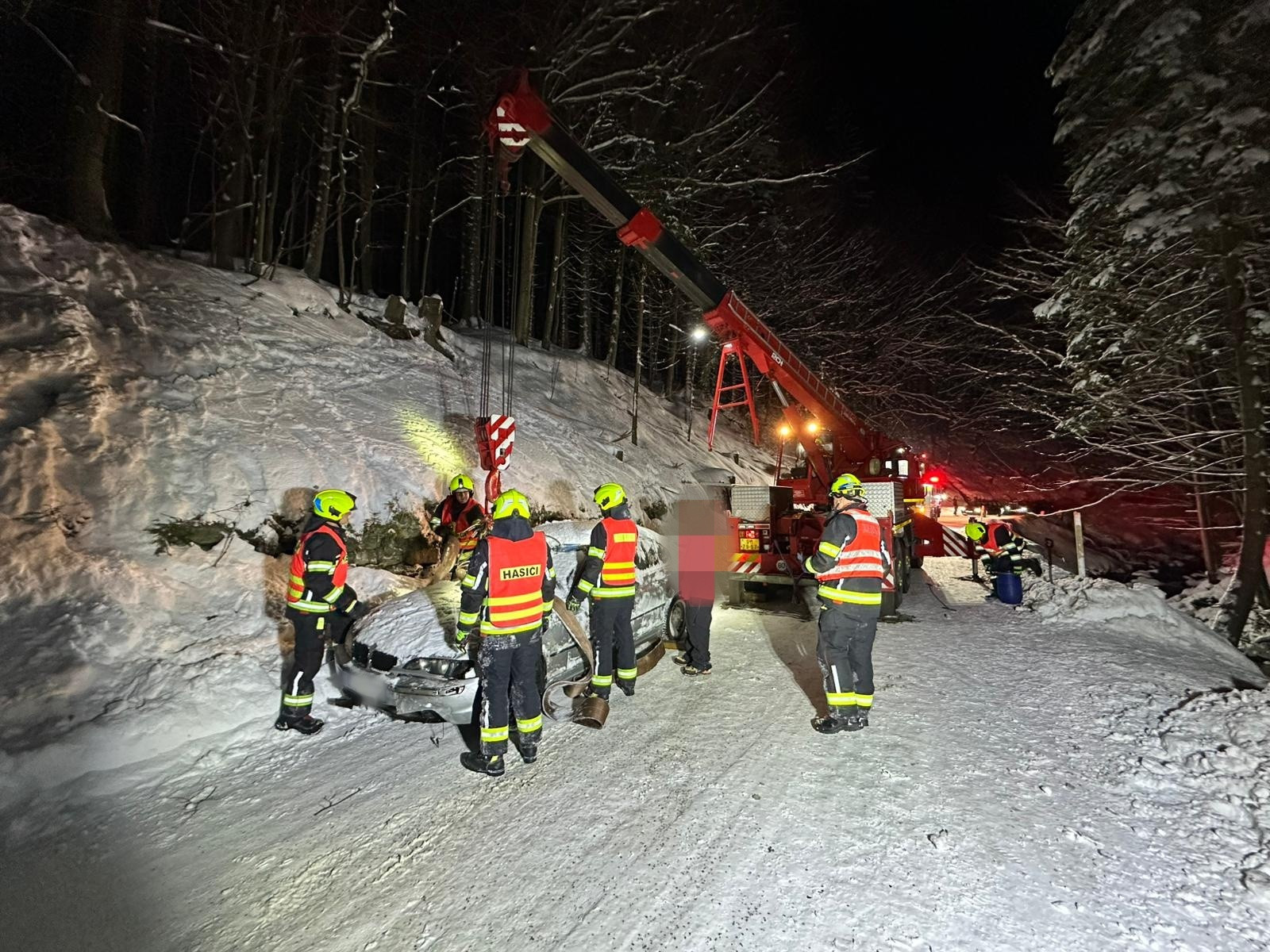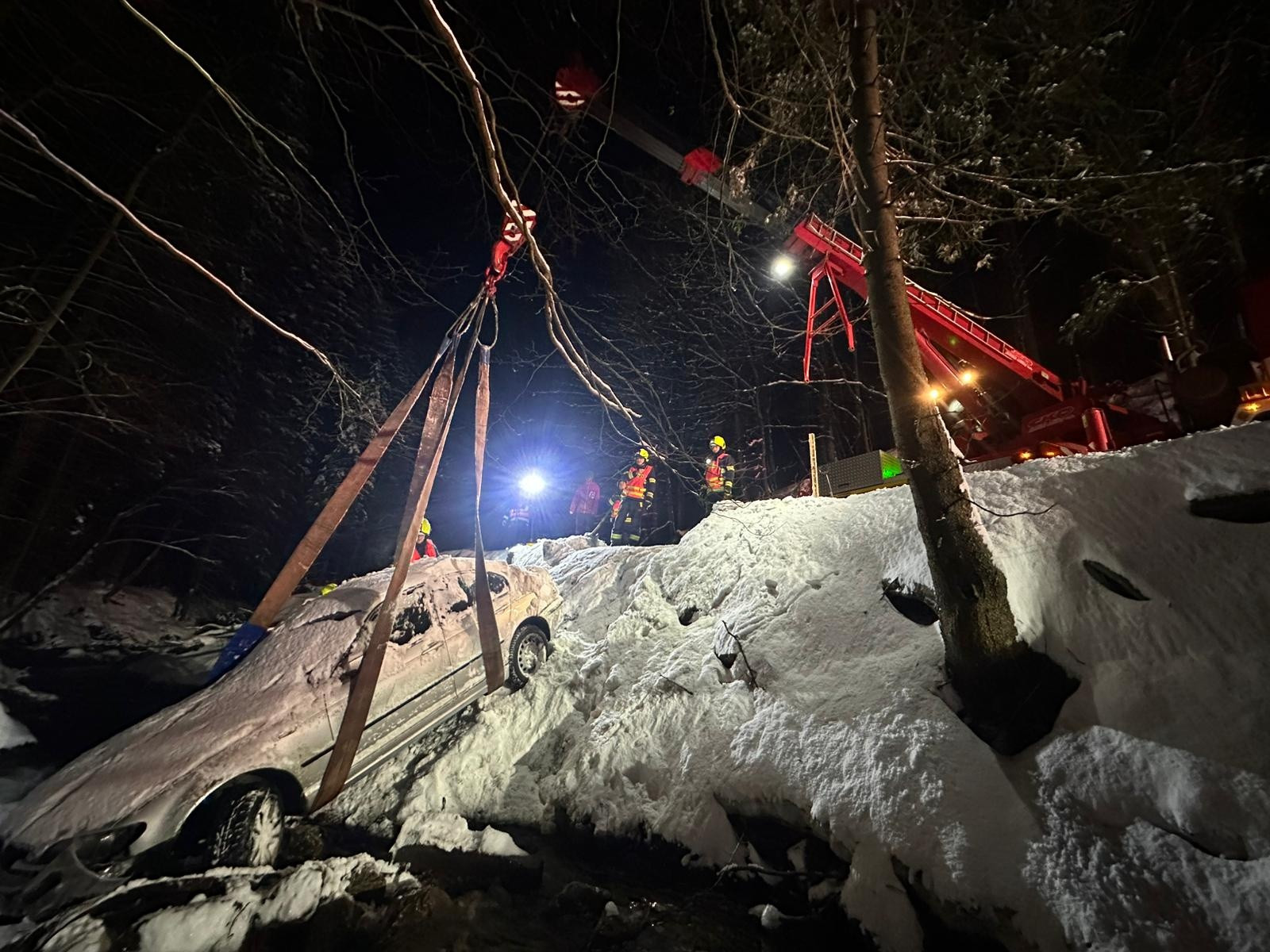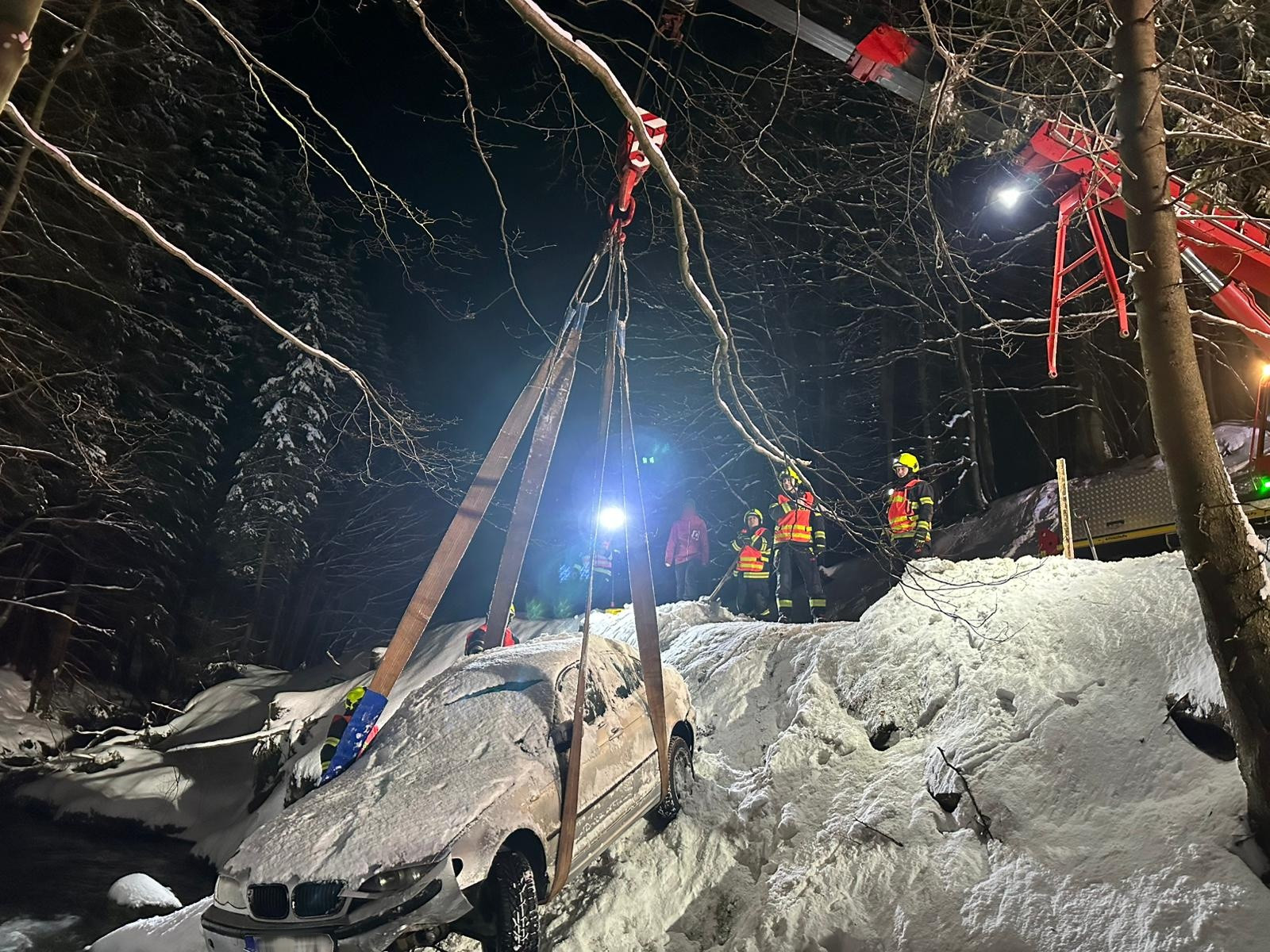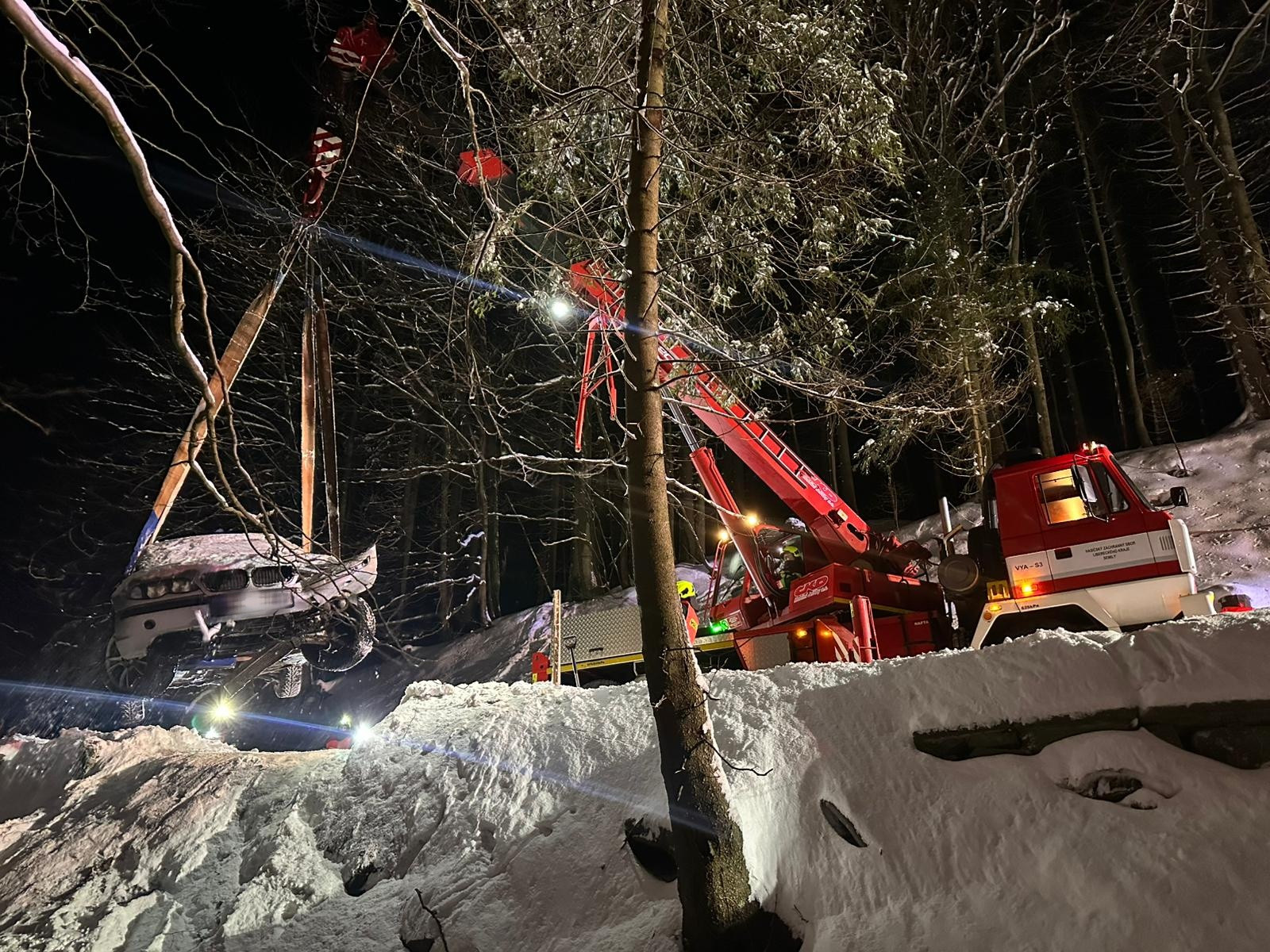 U Dolních Míseček sjelo auto do řeky Jizerky. Odtahovka nepomohla, vytáhli ho až hasiči