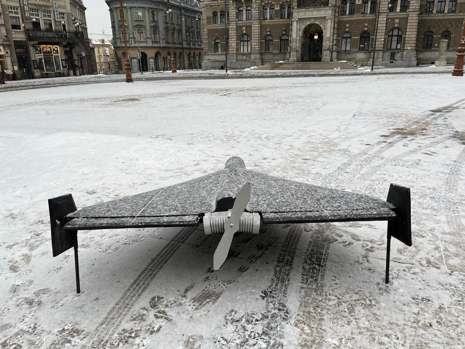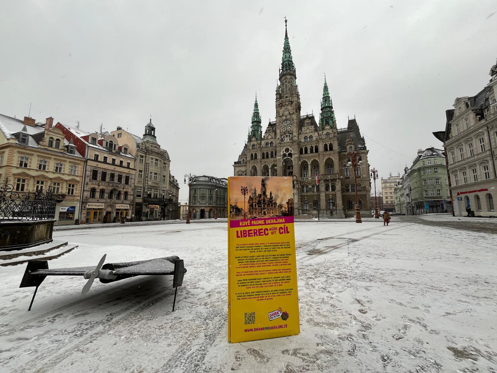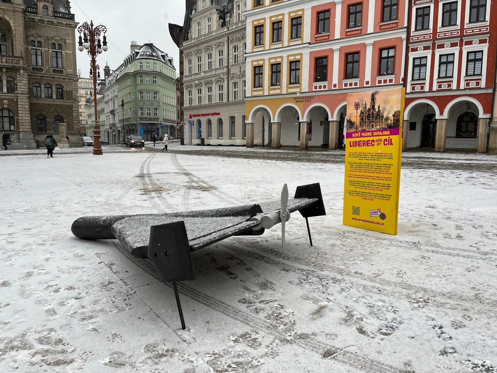 Liberec může být cíl. Před radnicí se objevil dron, který útočí na Ukrajinu