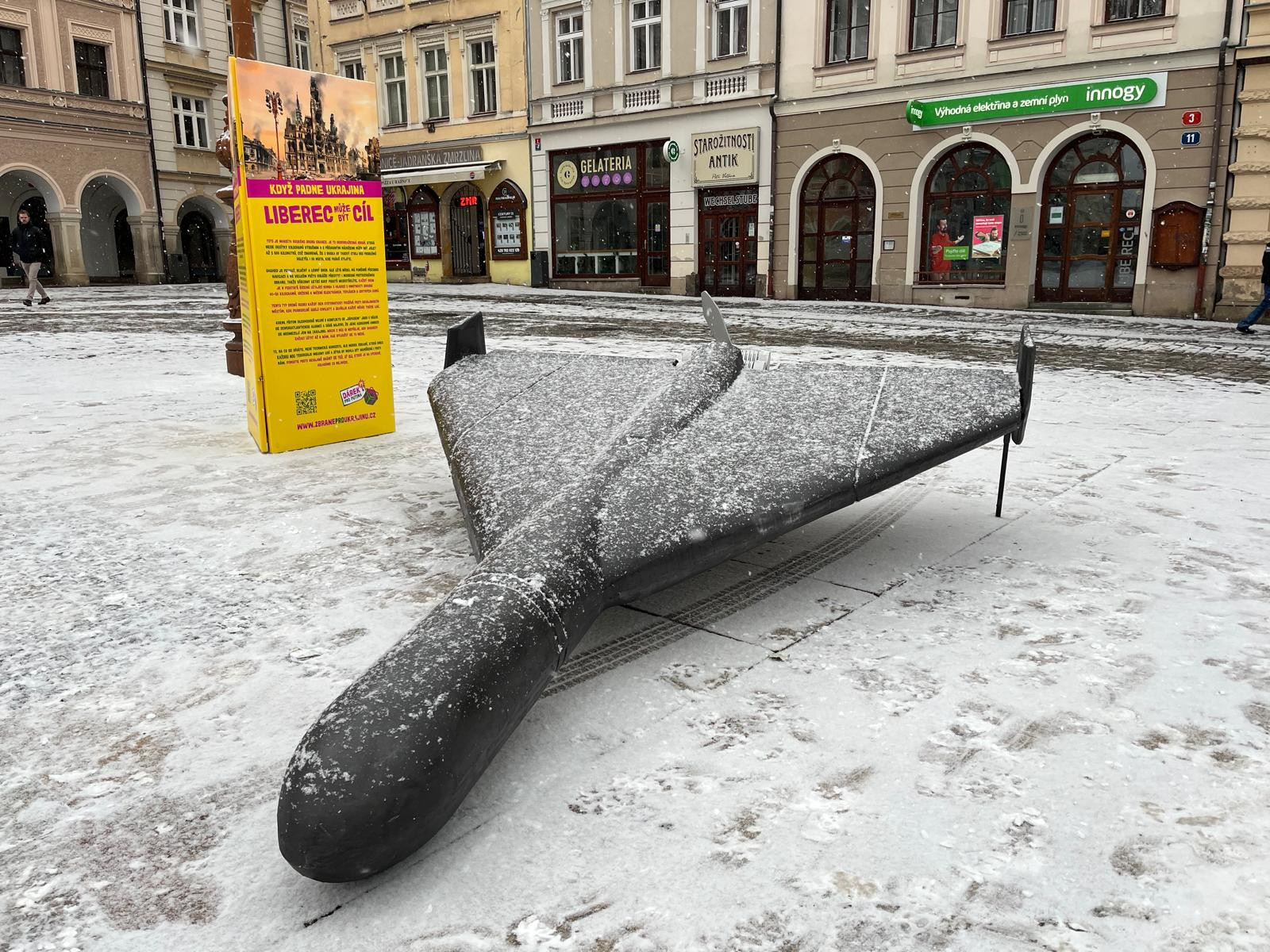 I Liberec může být cíl. Před radnicí se objevil dron, který útočí na Ukrajinu