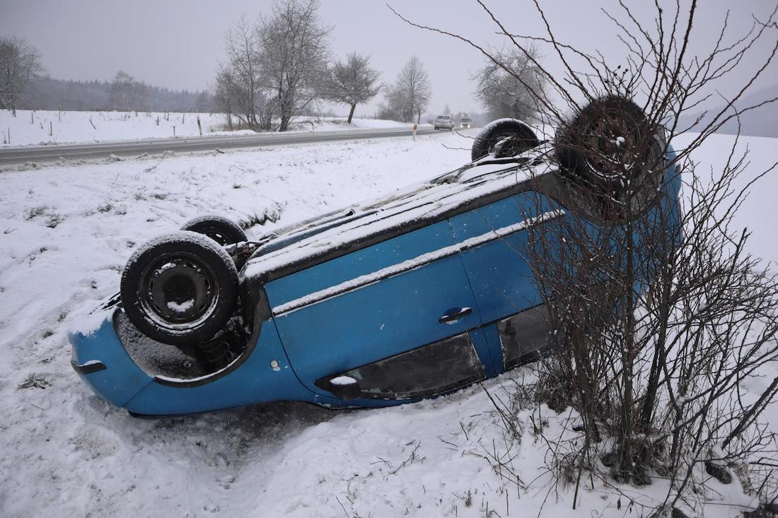 Řidič nezvládl jízdu a otočil auto na střechu, nadýchal přes jedno promile