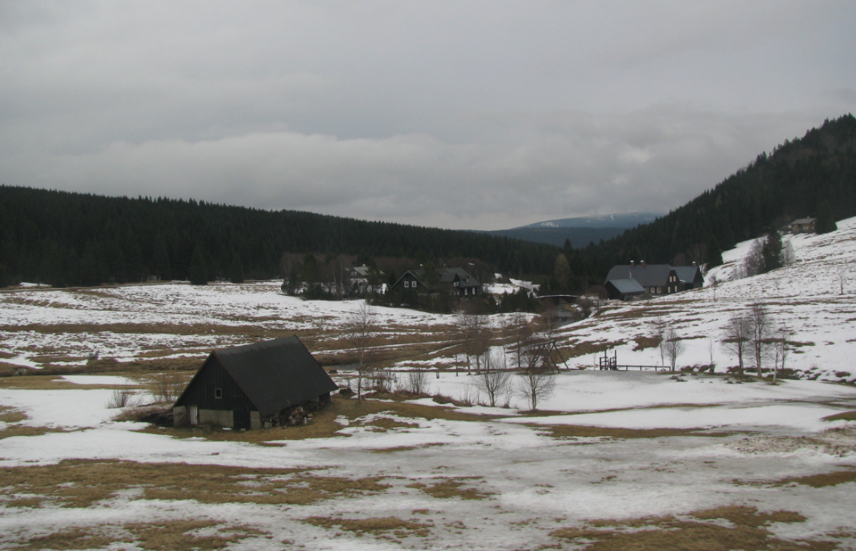 Obrázek ukazuje, jak to v lokalitě Jizerka vypadalo dnes 1. března 2026