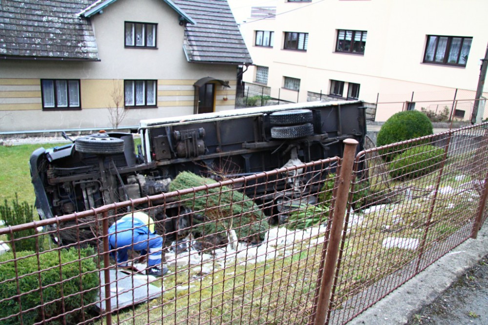 Neopatrný řidič zaparkoval Avii v zahradě. Vyvázl bez zranění. Foto: HZSLK