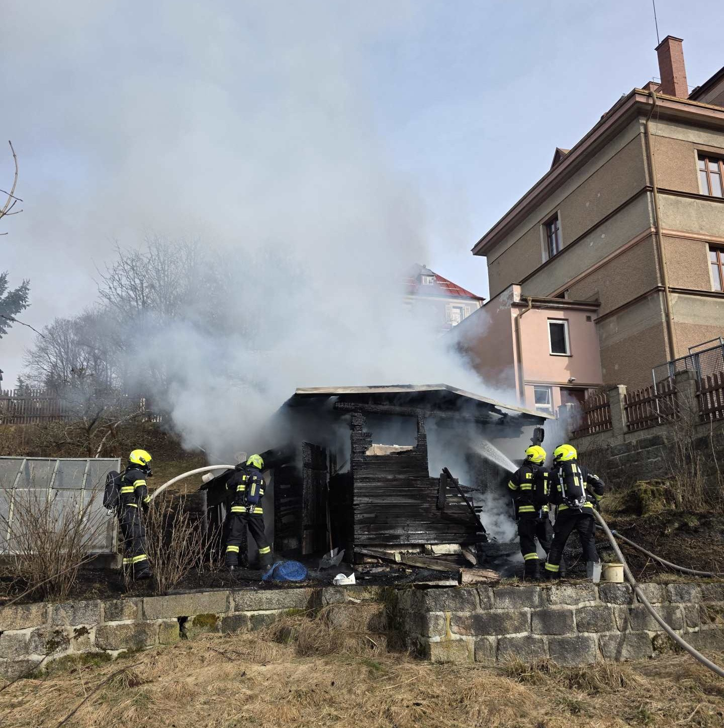 Požár v Jablonci. U domu shořela dřevěná kůlna