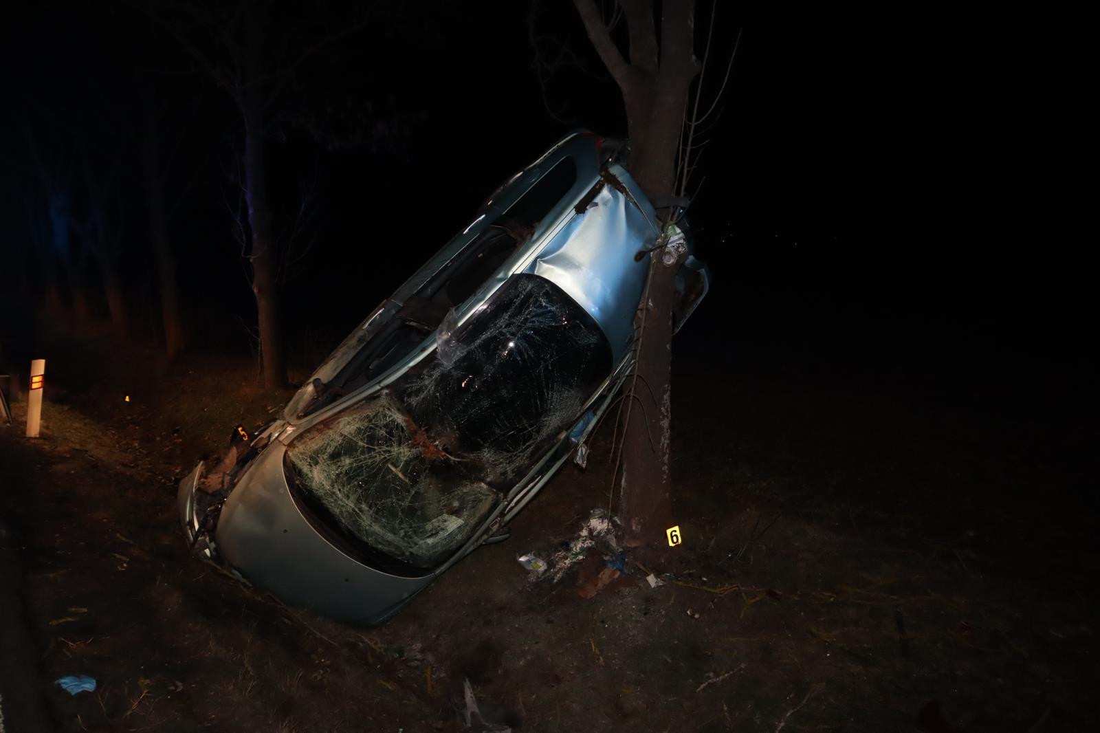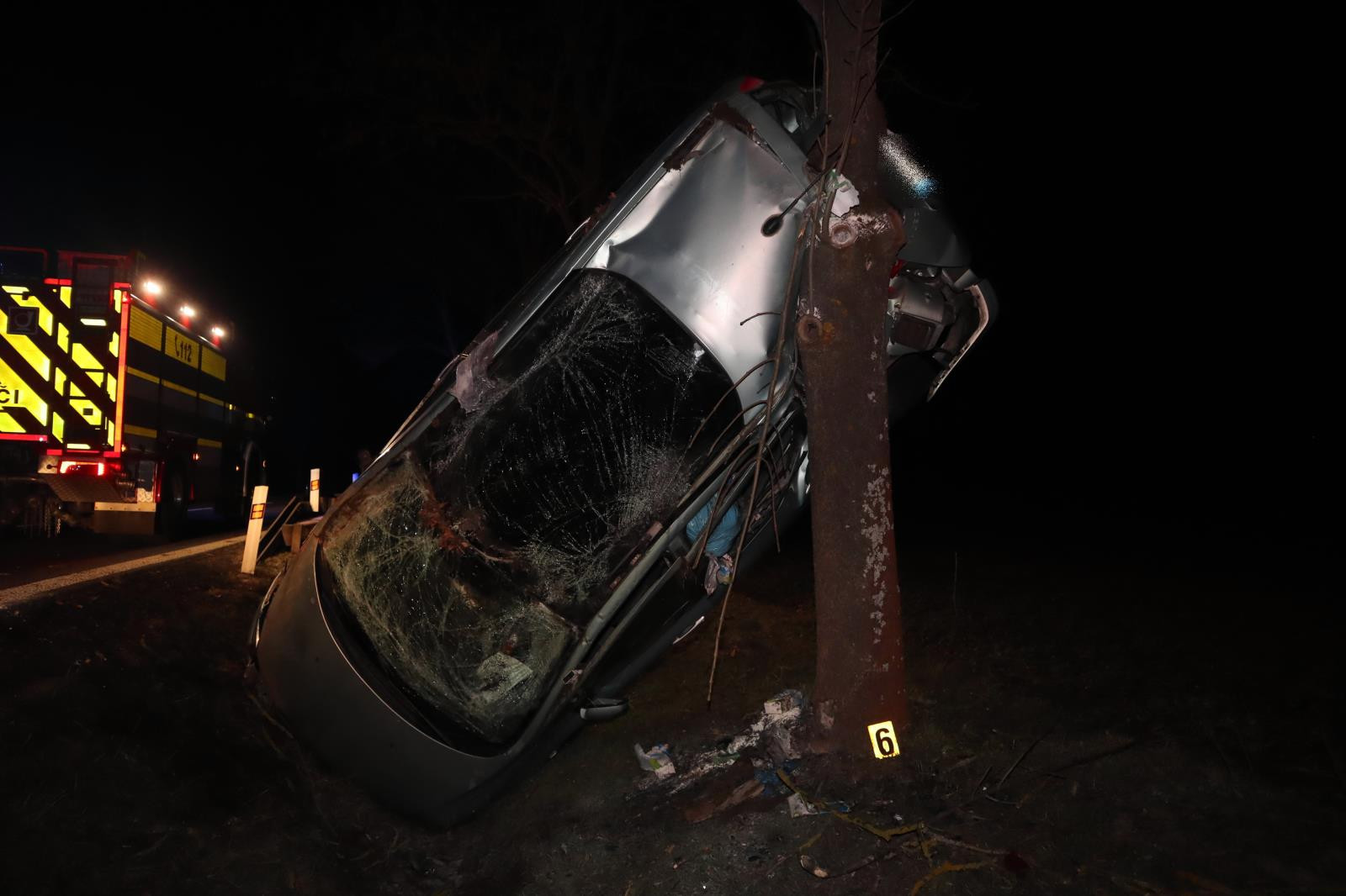 Na rovném úseku vyjel ze silnice, auto opřel o strom. Řidič vyvázl s lehčím zraněním
