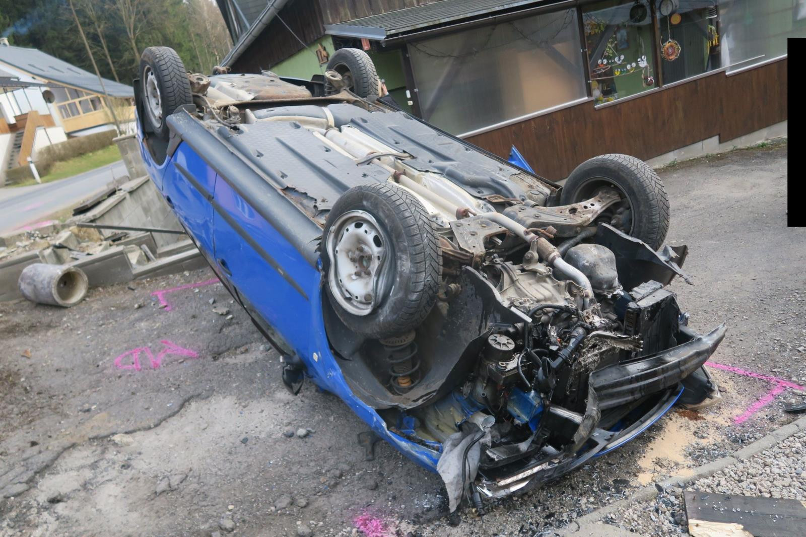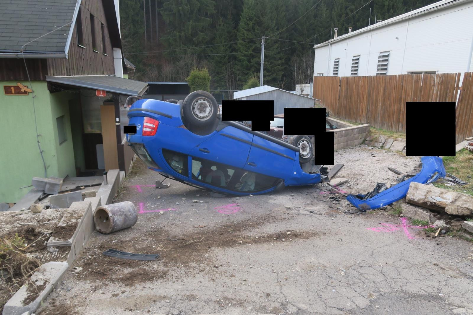 Řidiče přemohl mikrospánek, s autem narazil do plotu a skončil na střeše
