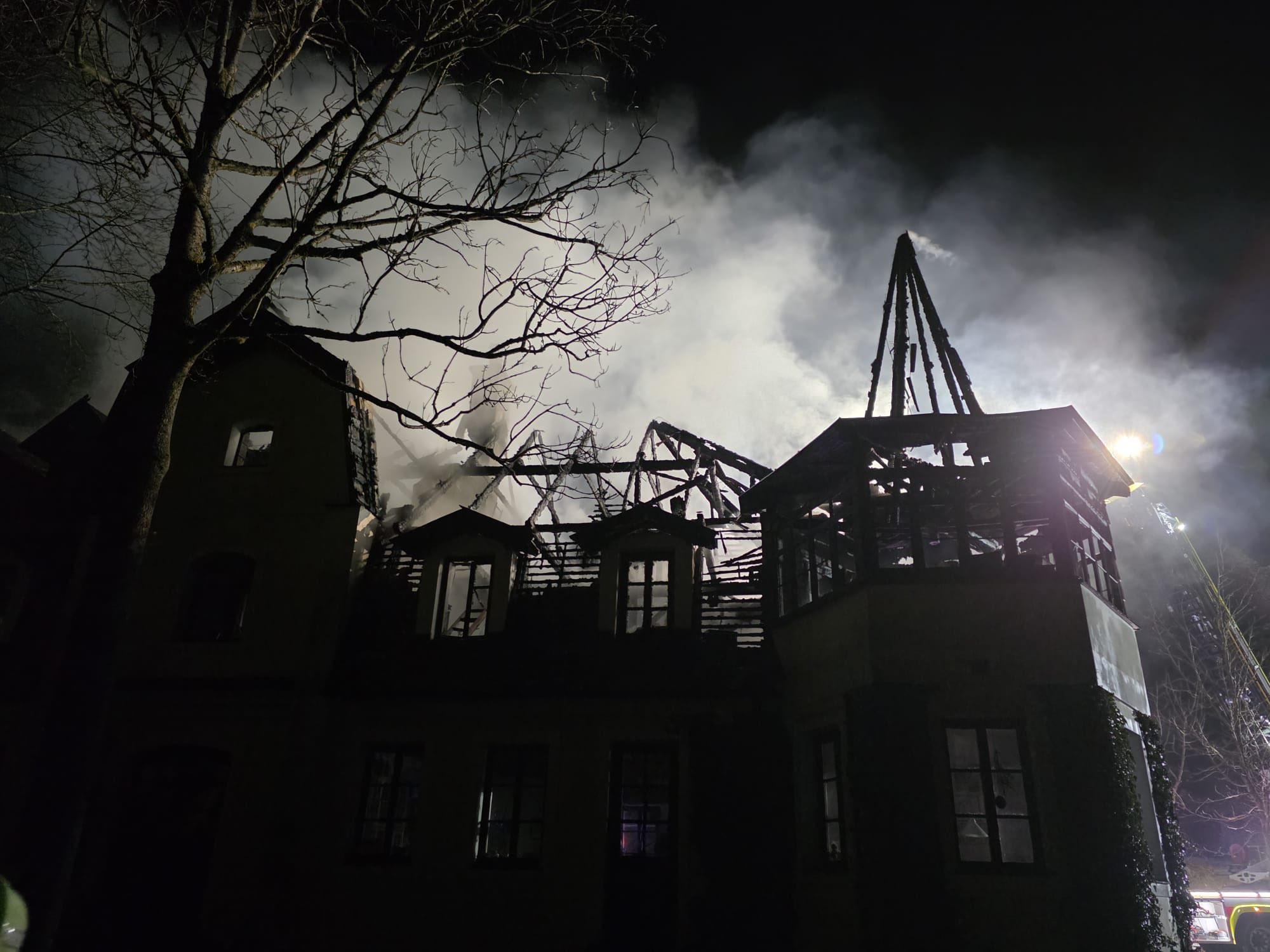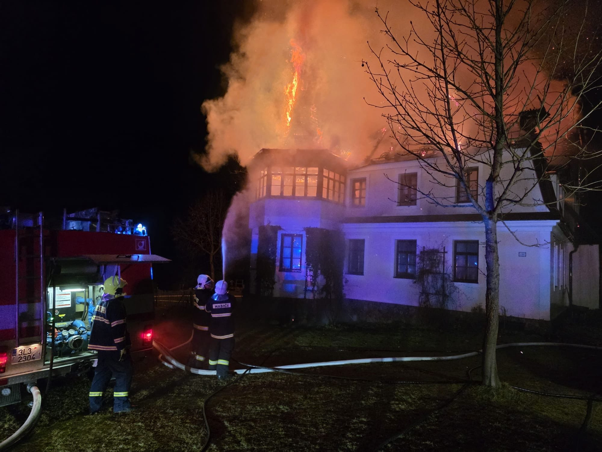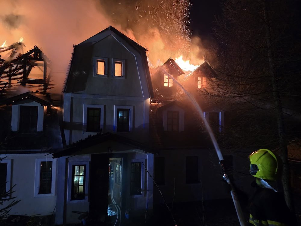 Noční požár na Benecku. Hořela střecha dvoupatrového objektu