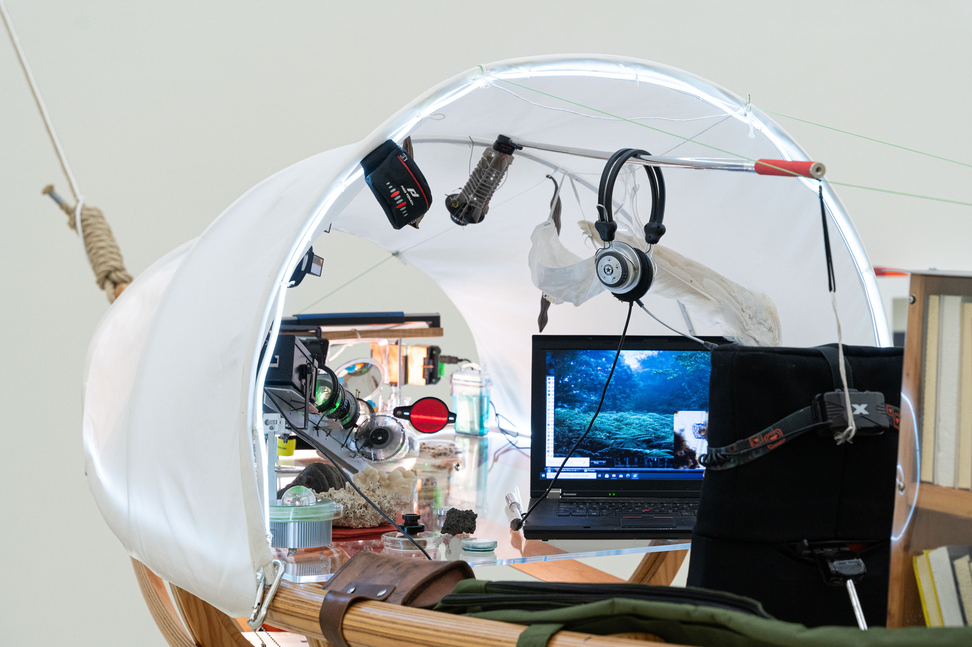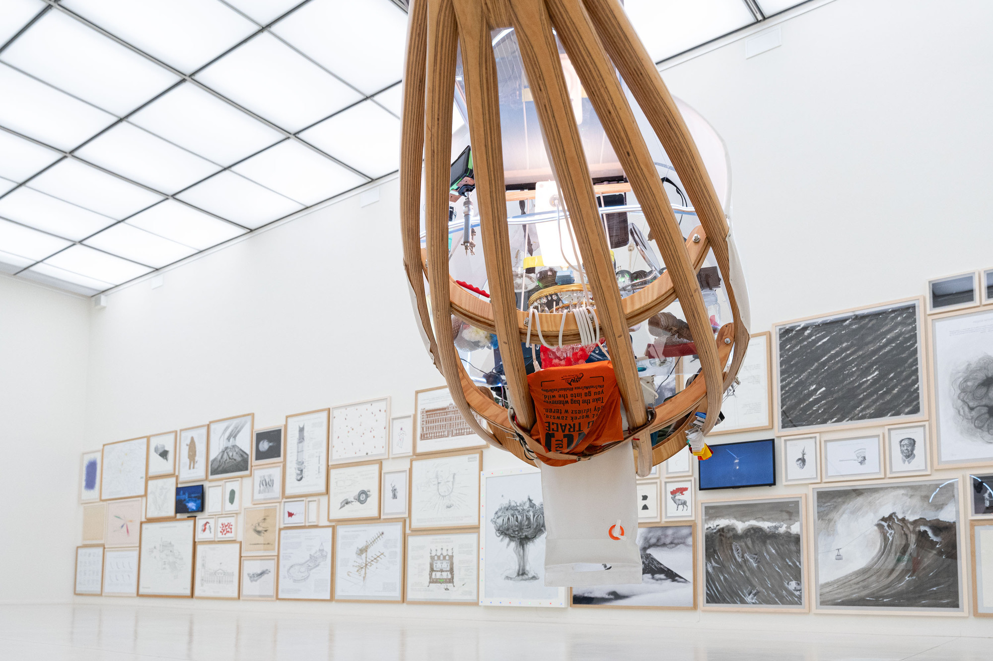 Pohled do výstavy Jiřího Černického, v popředí dílo Hamak z roku 2021_foto Matěj Kania