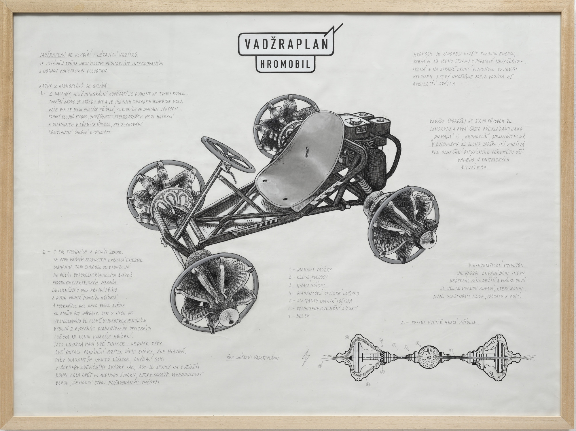 Jiří Černický, Návrh na konstrukci Hromobilu, 2017, 80 x 110 cm, tuš na papíře
