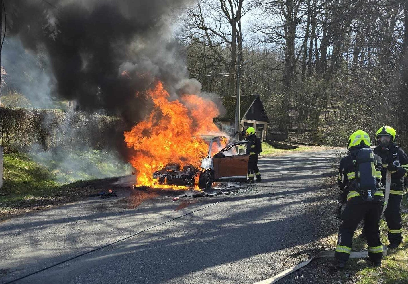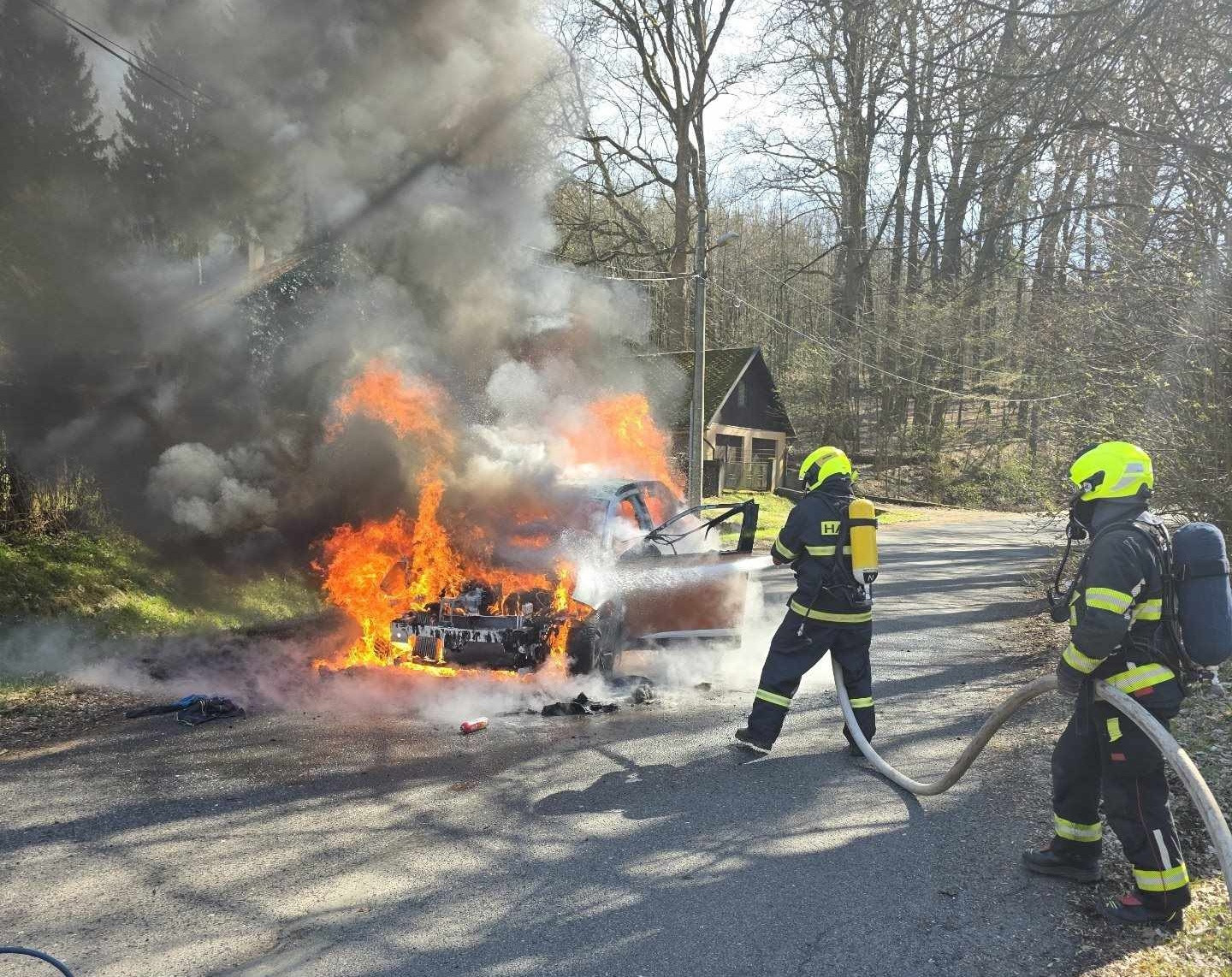 Zásah hasičů v Machníně. Shořelo auto, škoda je půl milionu