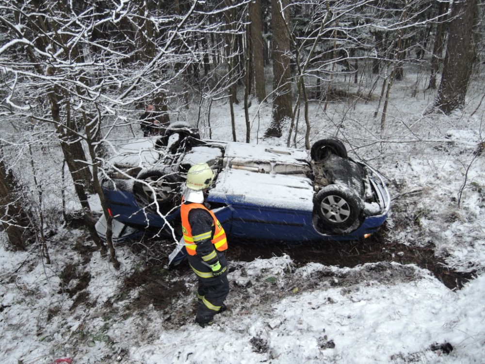 Auto sjelo na Semilsku ze silnice do čtyřmetrového srázu. Náraz ztlumila sněhová peřina více...