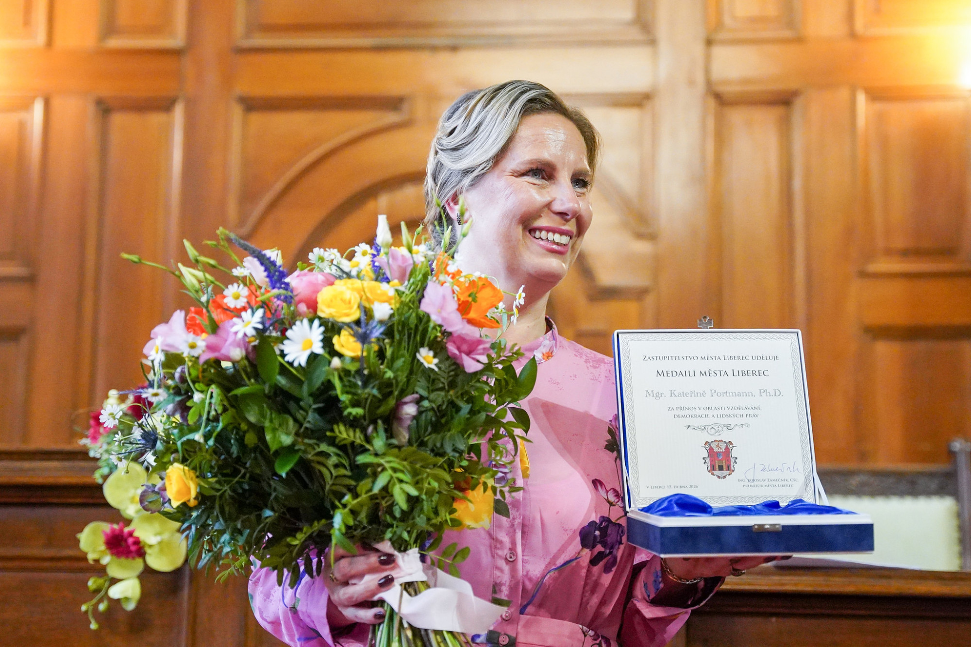 Medaile Liberce pro historičku Kateřinu Portmann. Podobné předání obřadní síň nepamatuje více...