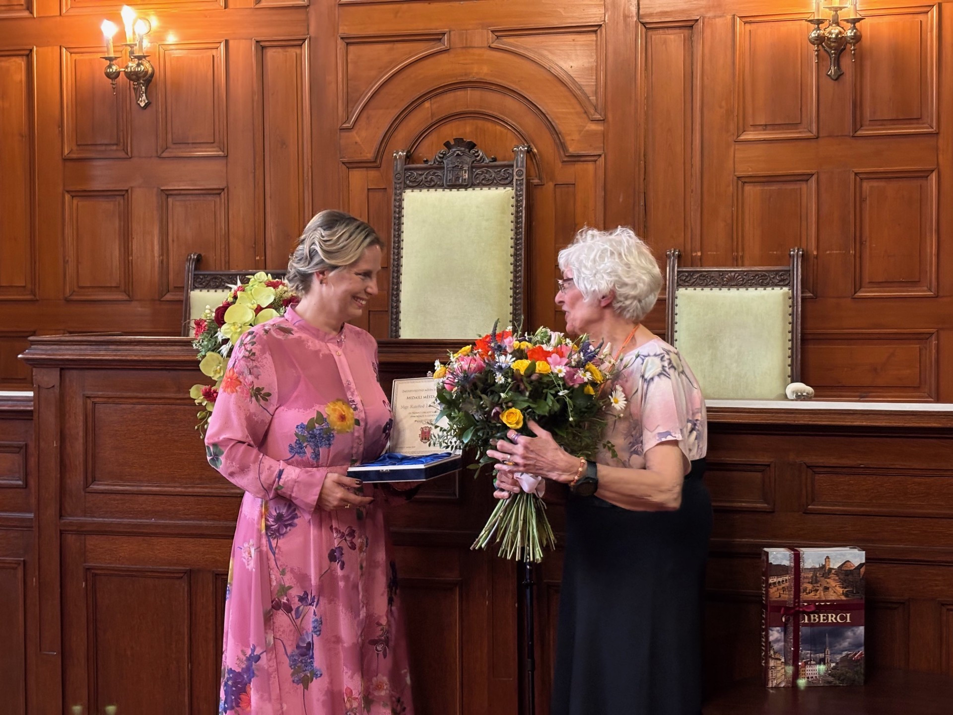 Medaile Liberce pro historičku Kateřinu Portmann. Podobné předání obřadní síň nepamatuje