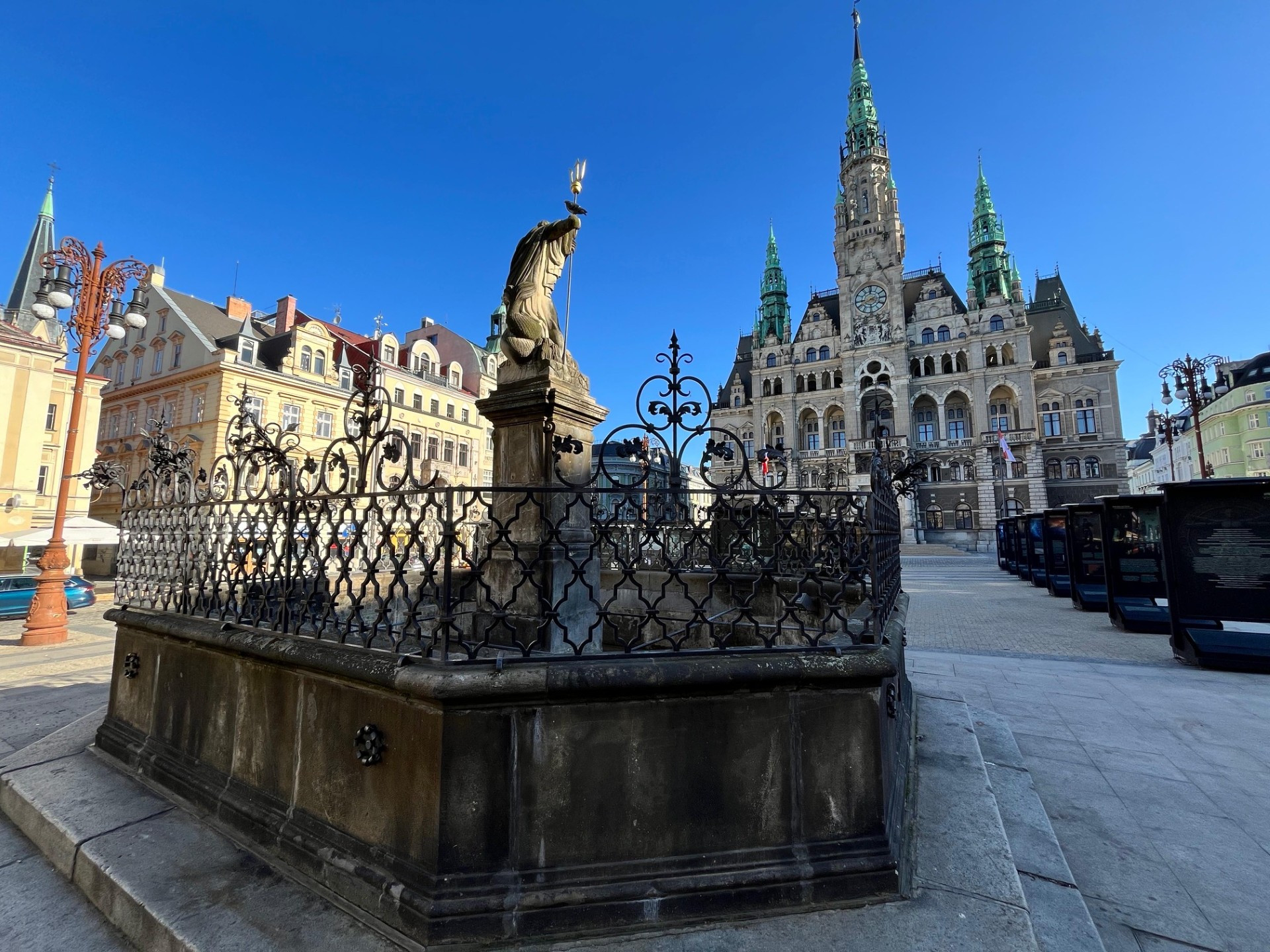 Neptunovu kašnu před radnicí v Liberci čeká oprava, protéká