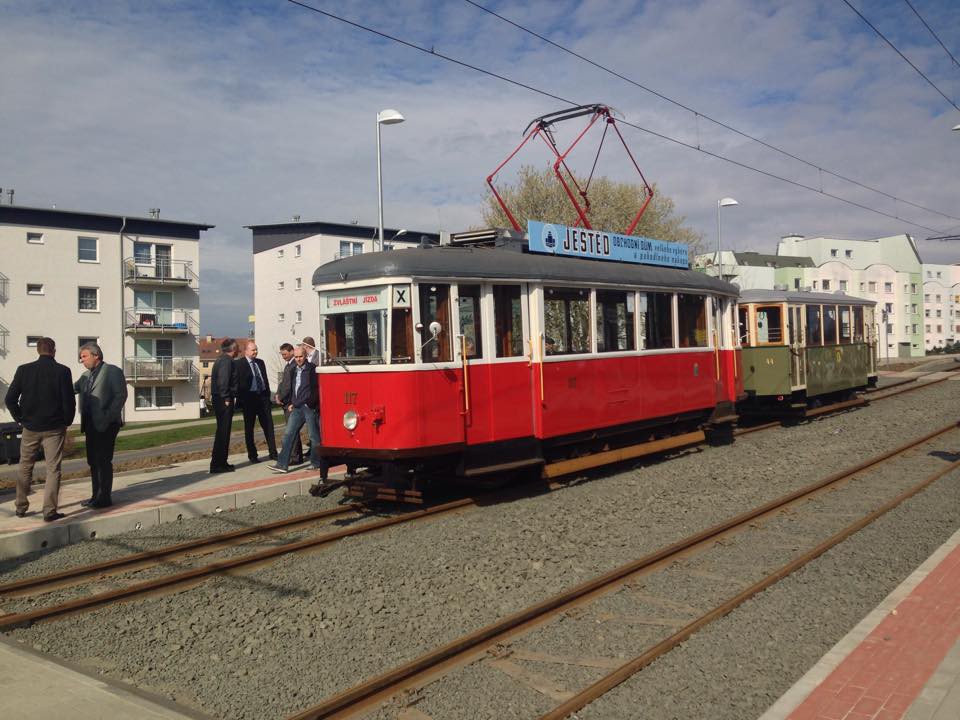 Historická tramvaj 6MT táhnoucí nově zrekonstruovaný vlečný vůz z roku 1932. Foto: Michael Daněk