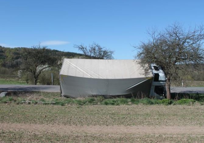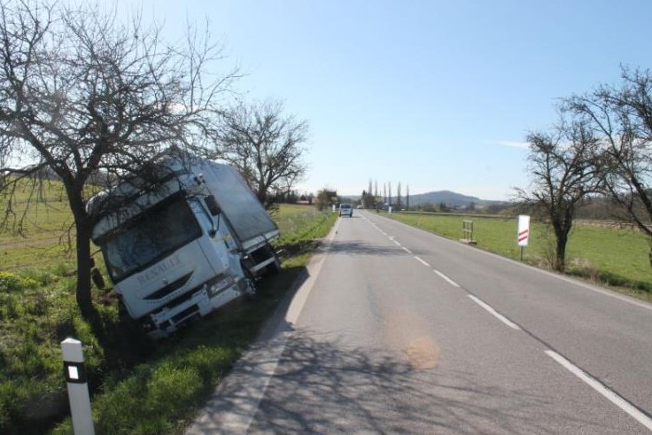 Nákladní auto zastavil řidič až o strom u silnice. Foto: Policie ČR