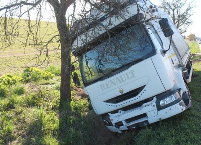 Nákladní auto zastavil řidič až o strom u silnice