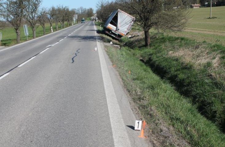 Nákladní auto zastavil řidič až o strom u silnice. Foto: Policie ČR