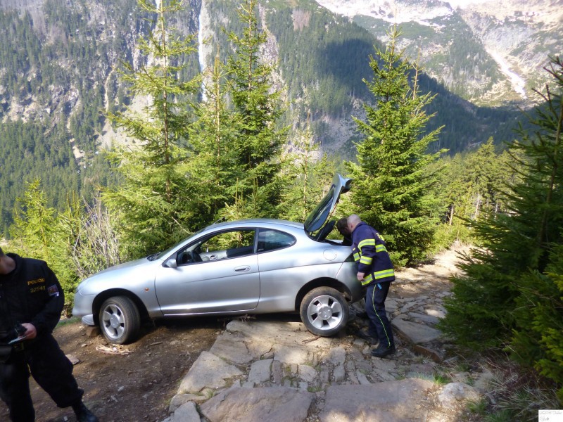 Řidič zasekl svůj Ford na hřebeni Krkonoš. Foto: KRNAP