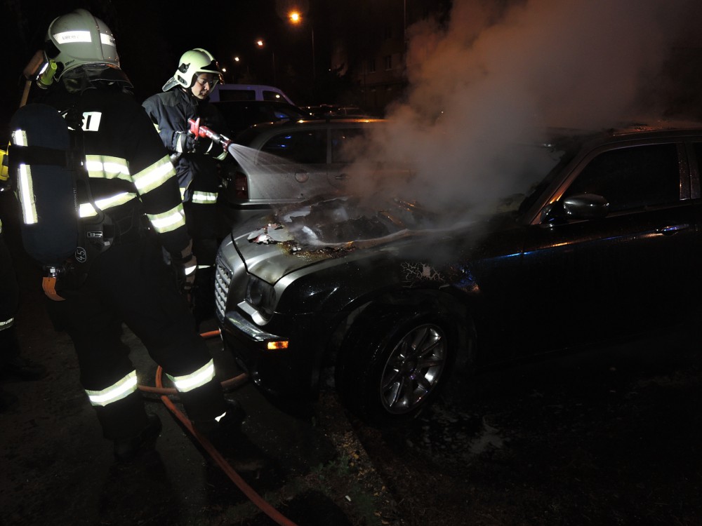 Žhář zapálil na sídlišti Broumovská luxusní Chrysler. Foto: HZSLK