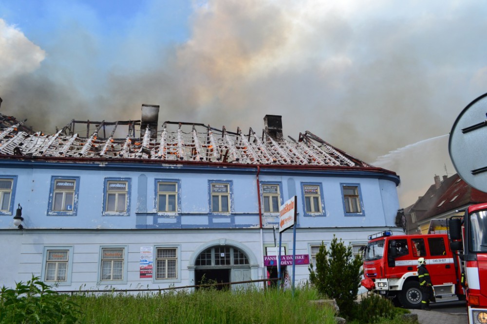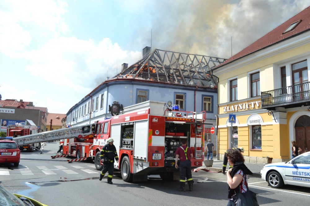 V České lípě hořel měšťanský dům, škoda jde do milionů. Foto: HZSLK