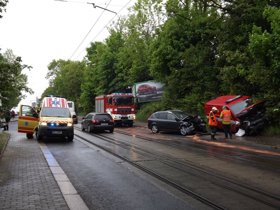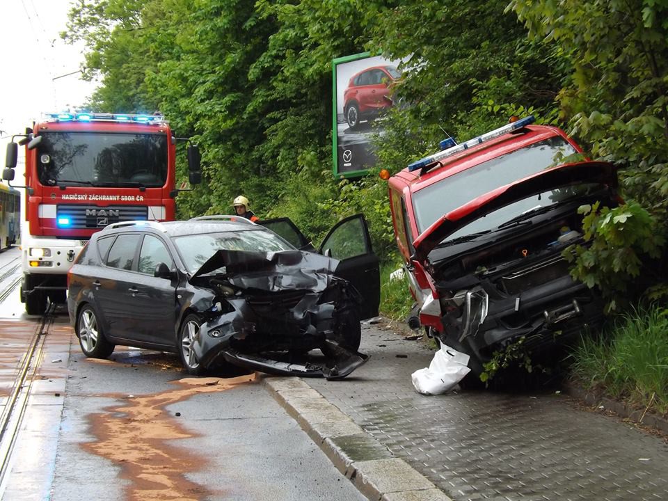 Pod vlakovým nádražím bourala hasičská dodávka