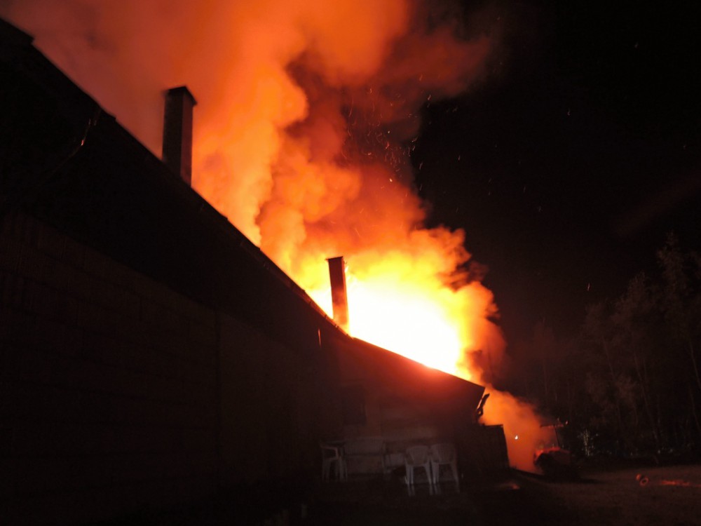 V noci shořela stodola a část domu ve vesnici u Turnova. Foto: HZSLK