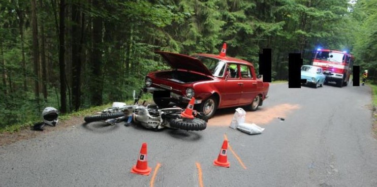 Motocyklista se zalekl "stovky" a spadl, skončil v nemocnici. Foto: Policie ČR
