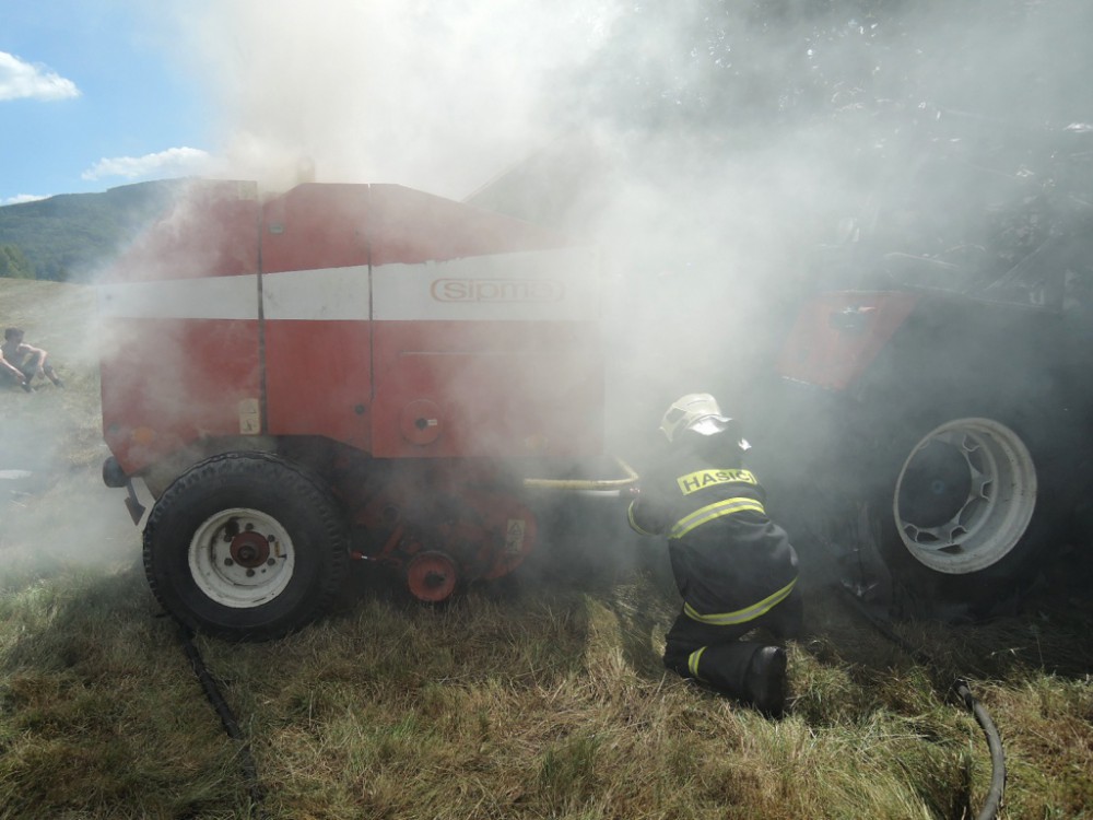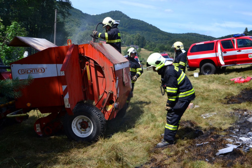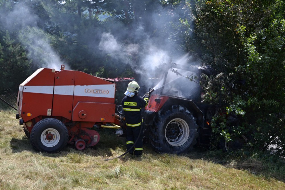 Hasiče zaměstnal hořící traktor na louce v Oldřichově