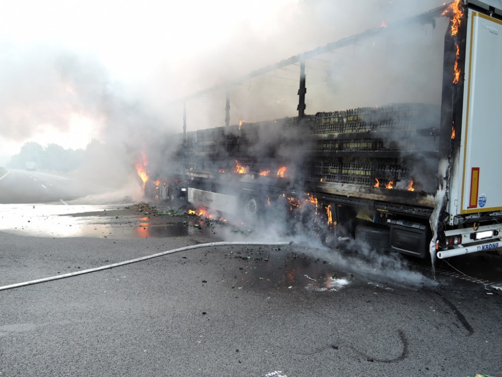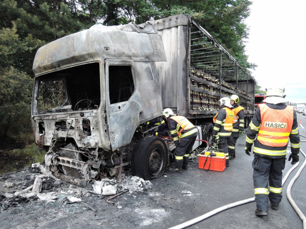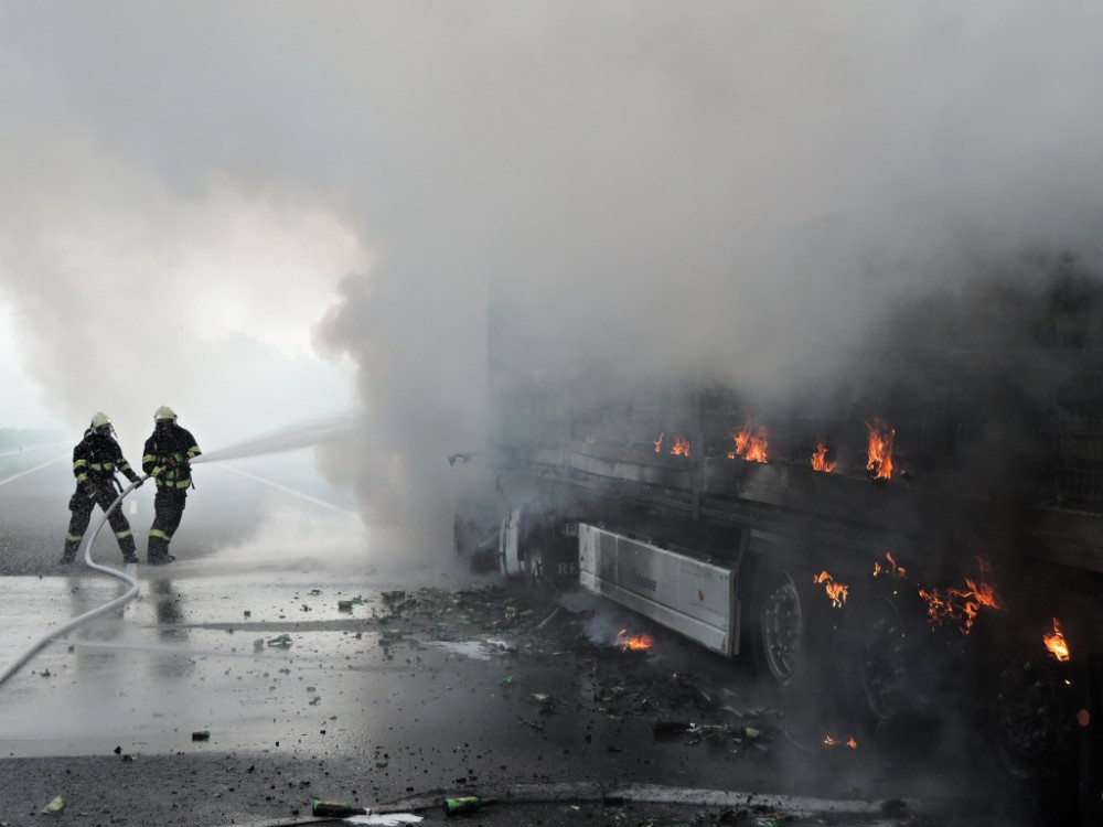 Škoda jde do milionů. Na rychlostce shořel kamion plný piva