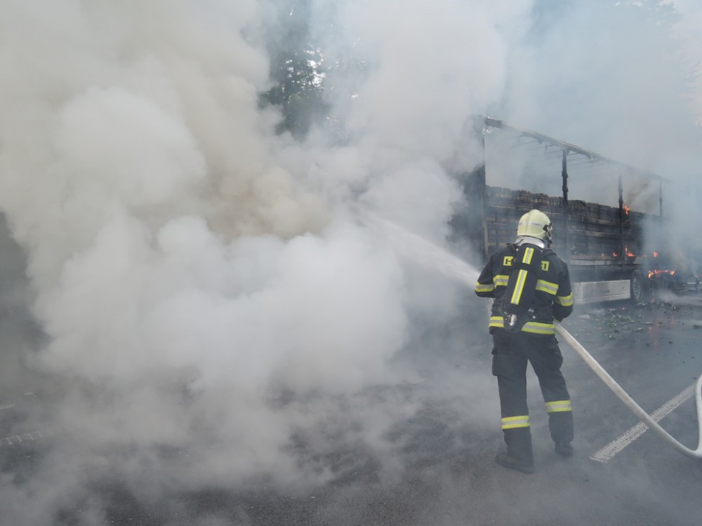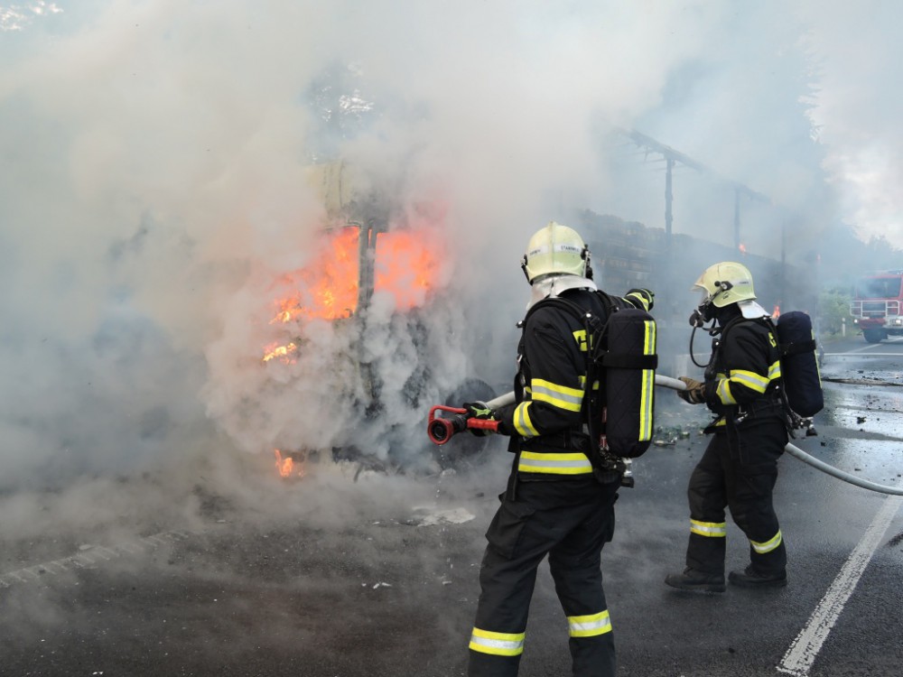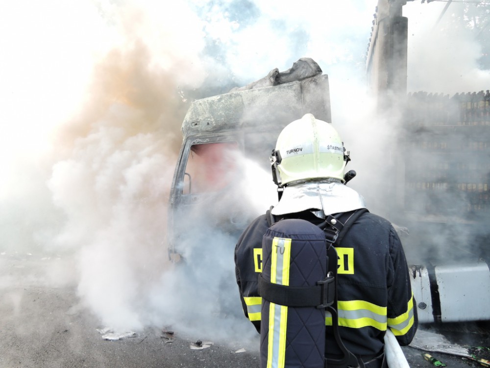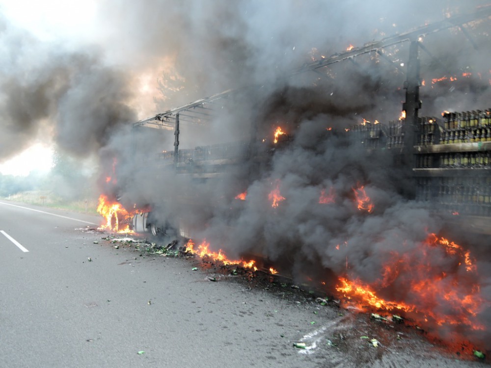 Škoda jde do milionů. Na rychlostce shořel kamion plný piva. Foto: HZSLK