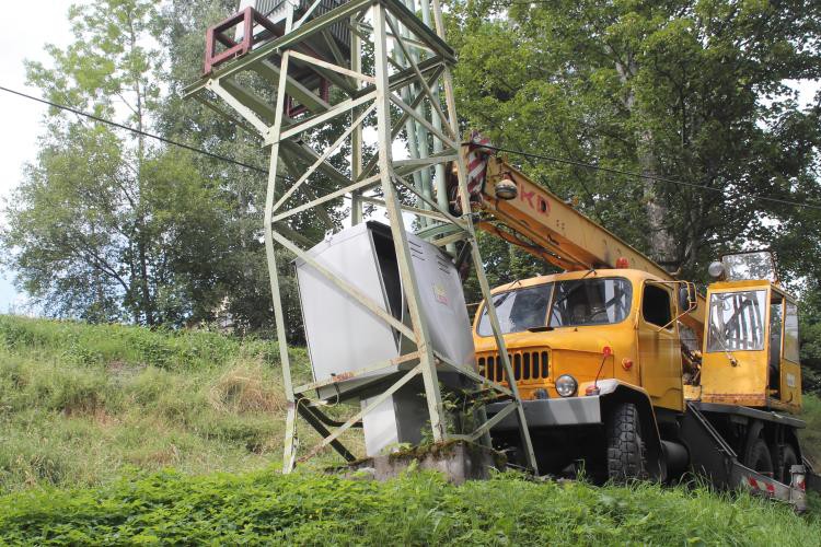 Nezabrzděný autojeřáb naboural do trafostanice. Foto: Policie ČR