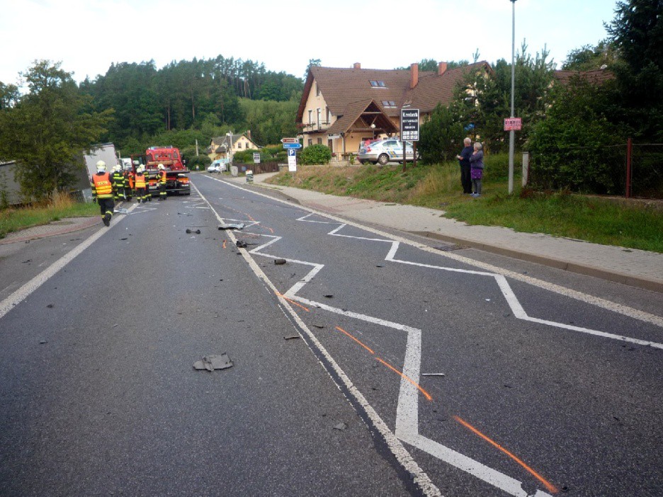 Ve Lvové se srazil kamion s osobákem, nafta unikla do luk. Foto: HZSLK