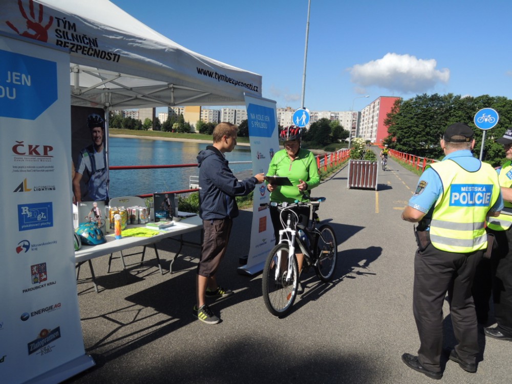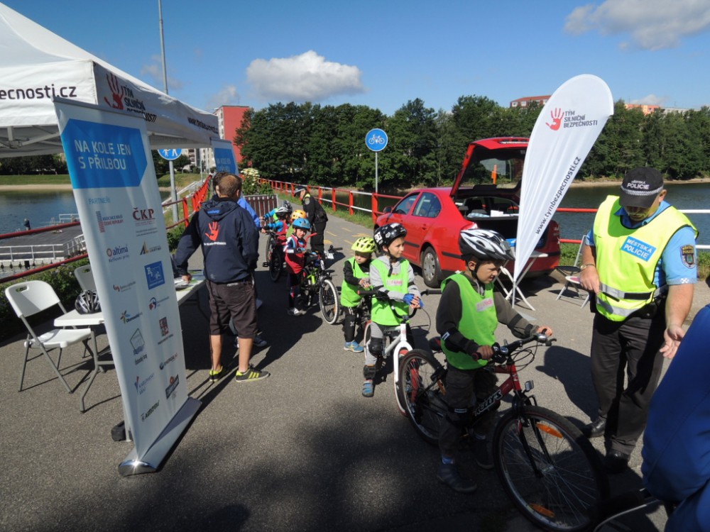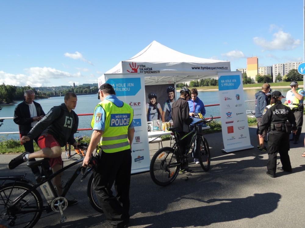 Ve čtvrtek na cyklostezce u jablonecké přehrady poradili cyklistům městští strážníci společně s Týmem silniční bezpečnosti