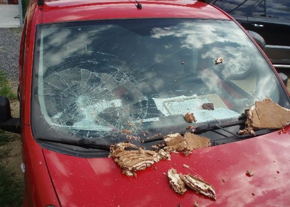 Pekáčem buchet rozbil čelní sklo auta. Foto: Policie ČR