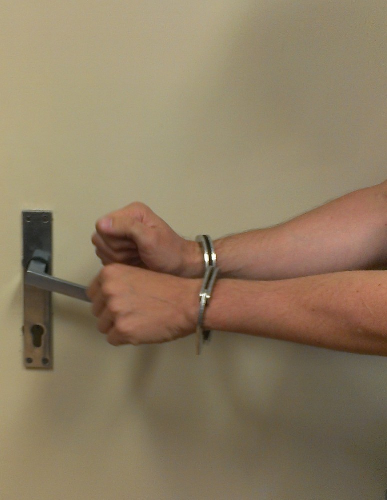 Strážníci museli vysvobodit muže, který se zamkl do svých pout